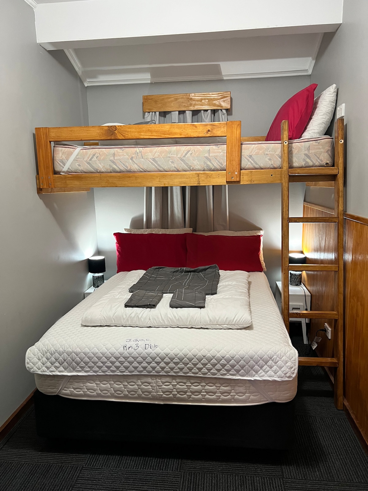 Room 1 consists of two tri-bunks: two double beds and two single beds. It has been newly renovated and includes an ensuite.