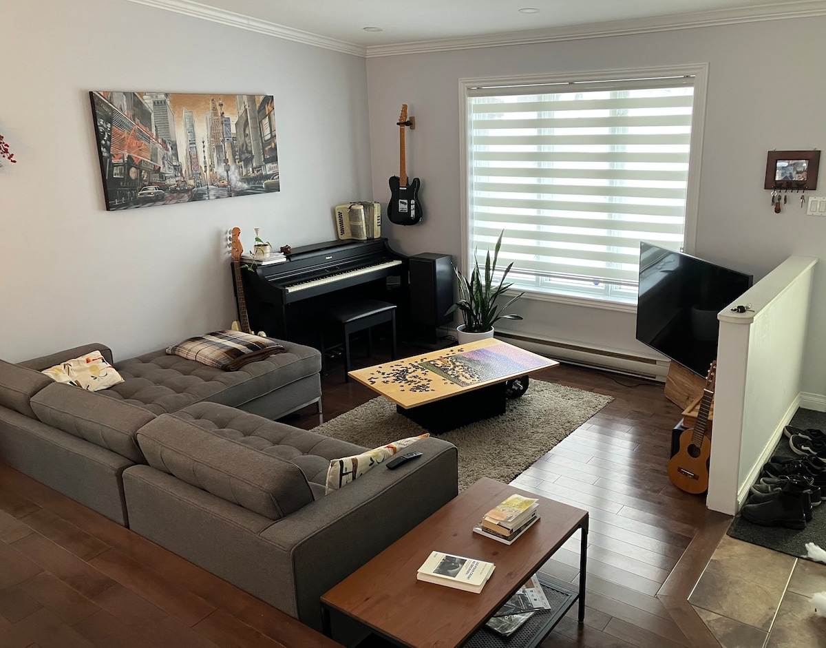 Détendez vous et relaxez dans ce logement tranquille et élégant situé dans un sous-sol avec accès privé. L'appartement est près de l’aéroport et des grands magasins de Québec. Vous avez aussi accès à tous les festivals grâce aux transports en commun situé au coin de la rue. Plusieurs attentions on été mise en place pour vous offrir une experience plus agréable. Espace de travail bien équipé + Connexion internet haute vitesse (1Gb/s) = Meilleur endroit pour le télétravail :) Amusez-vous !