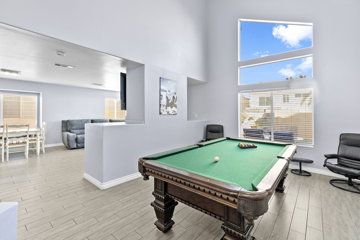 Welcome to your very own resort style oasis. Step into the comfort of Blissful Pool House. Our lovely home comes equipped for game night and entertainment just 7.4 miles away from the world famous Las Vegas strip! Take pleasure in this entire spacious home that’s also kid friendly. Grocery stores, markets, bars nearby . There are 5 free parking spots available to our guests in front of the property , and RV parking is included.