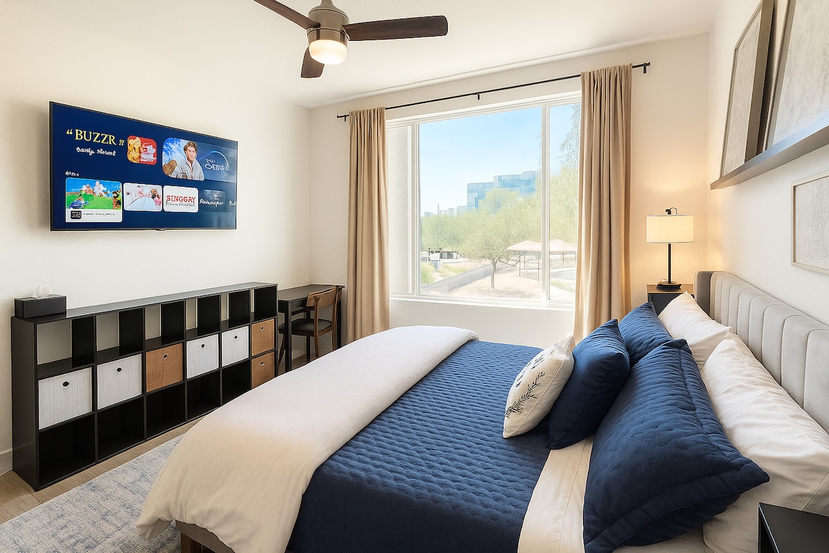 Experience tranquility in our bright and cozy upstairs unit with private access, nestled in the heart of Silverado Ranch! Relax on the large patio with a BBQ, overlooking a serene backyard, perfect for morning coffee or evening drinks. The flexible second bedroom doubles as an office, ideal for remote work. Located just 13 minutes from the airport and close to shopping and dining, our home offers convenience and comfort. Enjoy the spacious living room and dining area for a truly relaxing stay.
