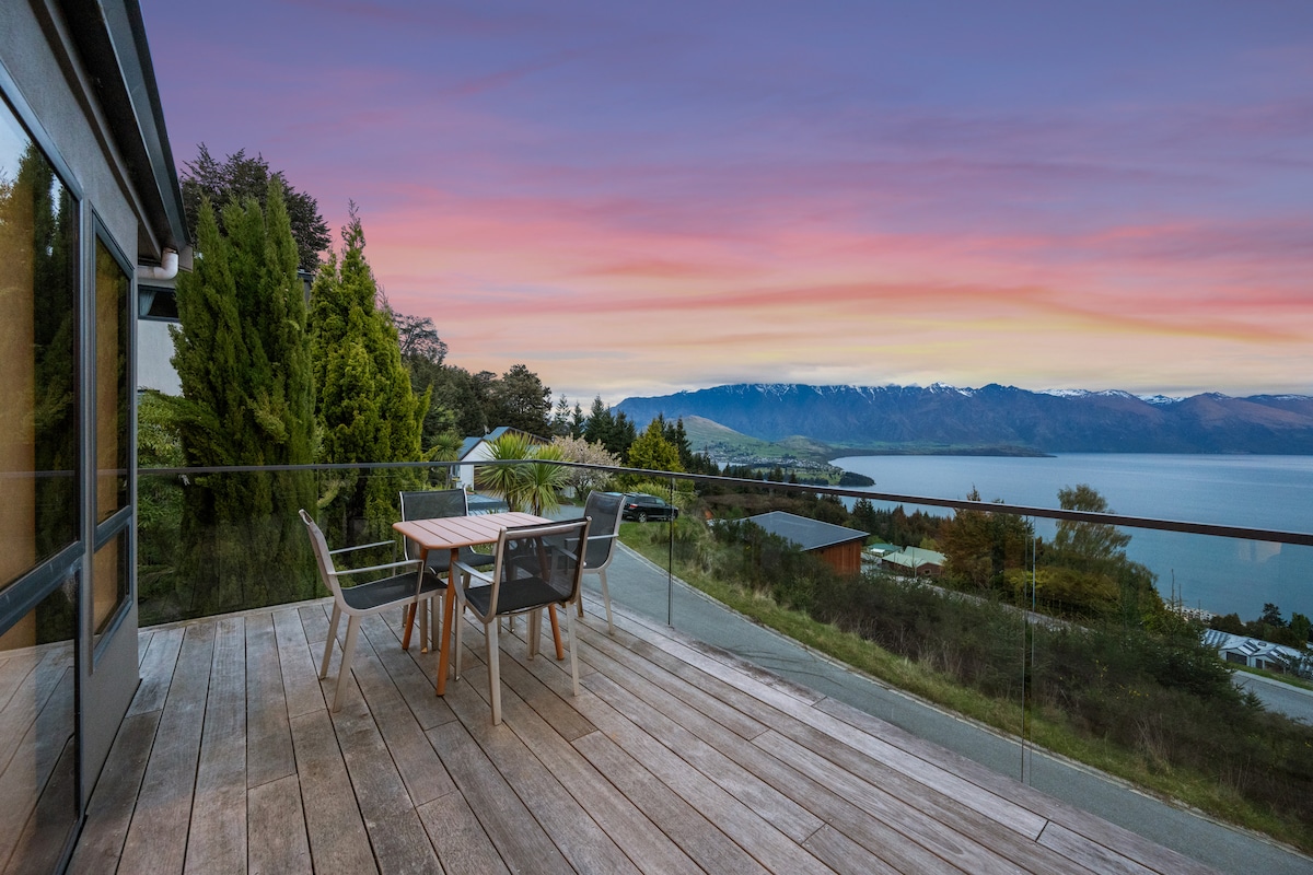 - NEW SPA!!! - No hidden cleaning fees - Underfloor Heating and Air-conditioning - Unlimited High-speed Wifi - Complimentary use of our bikes Step into pure indulgence at this exceptional Queenstown retreat, where every room offers uninterrupted views of Lake Wakatipu and the majestic surrounding mountains. Perfectly designed for all seasons, this three-bedroom home combines sleek modern elegance with thoughtful comfort, creating an unforgettable alpine experience.