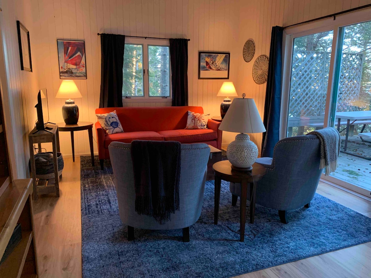 The Tiny House on Goose Cove is the perfect place from which to enjoy your visit to Acadia National Park. Set on three acres of shore front property, the house features spectacular views of Mount Desert Island. The entrance to the Park, and the shops and restaurants of Bar Harbor, are just 20-25 minutes away by car. And when you've had enough of the bustle and crowds, you can retreat to the peace and serenity of this beautiful property.