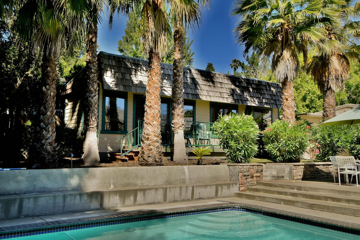 Former Plus-rated Studio. How about a rejuvenating get-away with pool and hot tub? Picture window overlooking a garden. Sunbathe poolside. Watch TV from a comfy bed before falling into a restful sleep. 27 stairs to house, 3 stairs inside unit. Complimentary beverage for 3+ nights/return stay. After 10 stays, $100 credit. Deep cleaned. 2 separate units off same foyer; no shared walls. Private locked unit door. Shared access to spa/pool (9am-11pm) for overnight guests only. Host lives upstairs.
