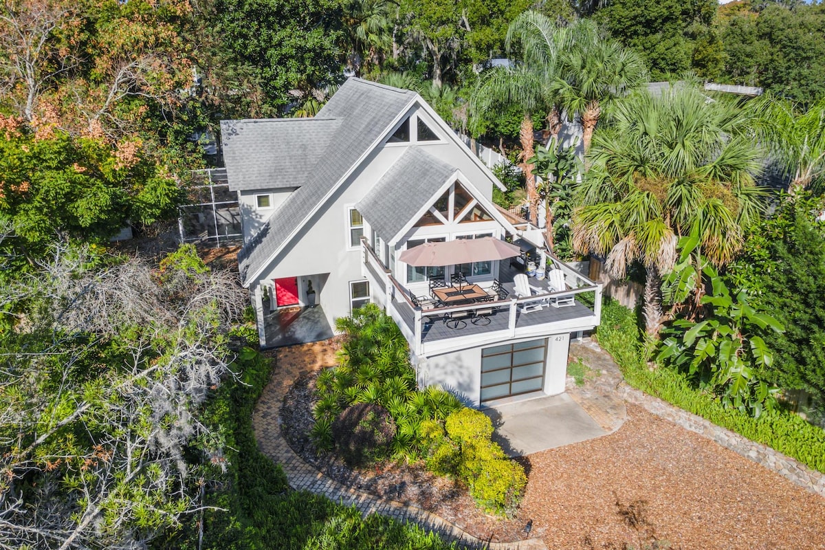 Walking distance to all Downtown Mount Dora has to offer! Our lovely 2 bedroom, 1 bath 1940s cottage has been recently renovated. Features fully outfitted kitchen, deck with gas grill and outdoor firepit. Comfortable and elegant living space with 65 inch smart TV. Primary bedroom features King bed and smart tv. Second bedroom has two cozy twin beds. Bikes available for use. Whether you’re coming to relax, boat, shop or partake in one of Mount Dora's many festivities, consider staying here!