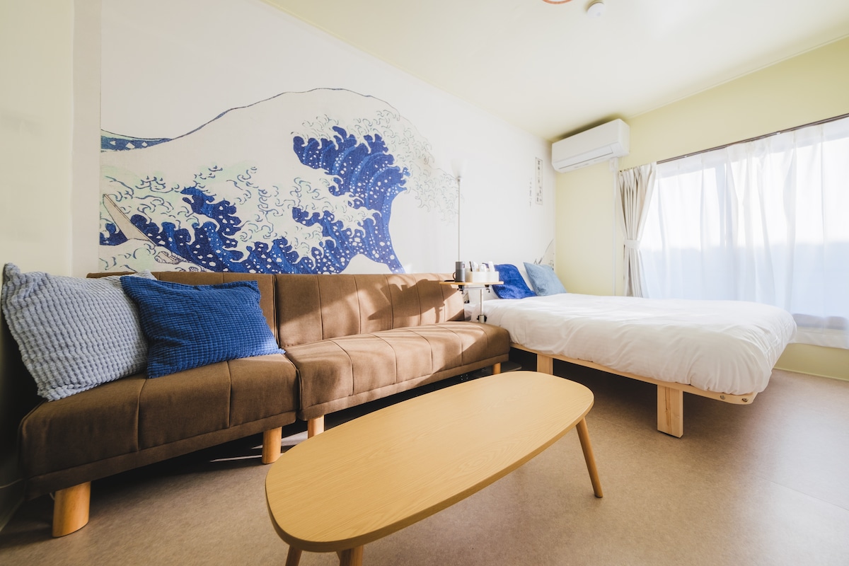 こんにちわ、Mickyです😄 河口湖駅から徒歩10分のアパートメントタイプの宿です。 アパート二階からの富士山の眺めはとても綺麗で、撮影スポットです☺️ コンビニ徒歩3分。 遊園地の富士急ハイランドも1駅でとても好立地。 部屋は私のこだわりで和室は桜柄の壁紙を天井まで張り巡らせました。さらに日本の伝統的な七宝柄や光が当たると金色に輝く壁紙もとても美しいですよ。畳を使った椅子や盆栽などのインテリアもあり、日本の【和】空間を存分に楽しんでいただけます。 部屋は4人まで宿泊可能です。 お子様用の食器や枕も準備しています。 ベッドは2メートルのとても大きなサイズで(2人)、畳にお布団を敷いて寝ることも可能(1人)。さらにおしゃれなソファをベッドにすることも可能。 日本の魅力を詰め込んだ室内と日本が誇る富士山を存分にお楽しみくださいね! ありがとう ※予約後、専用のシャワールームを案内します。また、シャワールームへ行くのに一度部屋の外に出て、隣の部屋へ移動する必要があります。少しだけ共用の廊下を通りますが、ほとんど他のゲストと顔を合わせることはないので、安心してください