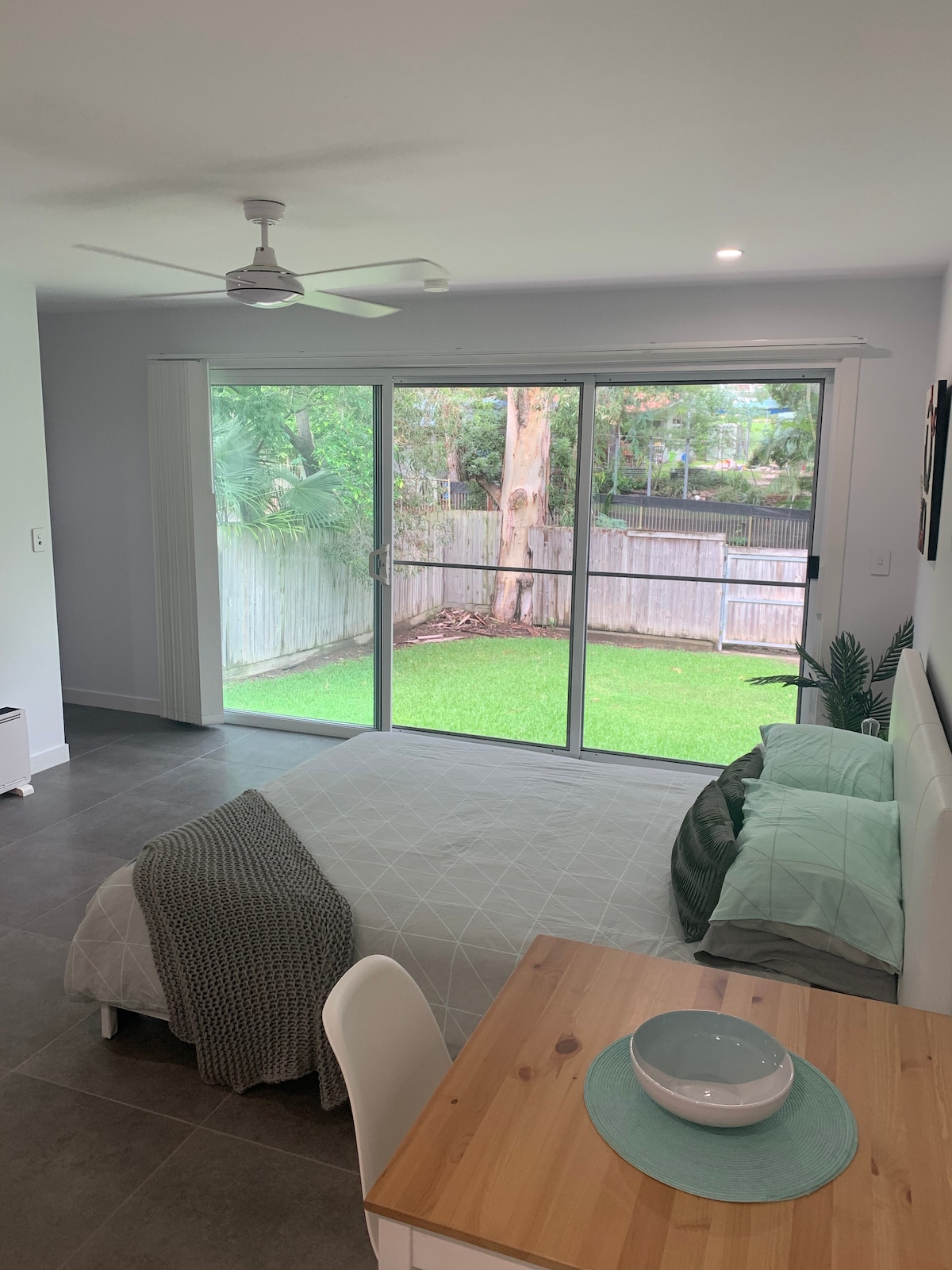 The Little Scandi Studio is modern, bright and clean. A little bit of Luxury and privacy in the suburbs. The Little Scandi Studio is one room 14.2sqm there is a large Queen bed a fully equipped kitchenette and modern bright separate bathroom. The Little Scandi Studio has a small outdoor deck a BBQ with table and 2 chairs contained in a secure courtyard. Which also has a washing machine.