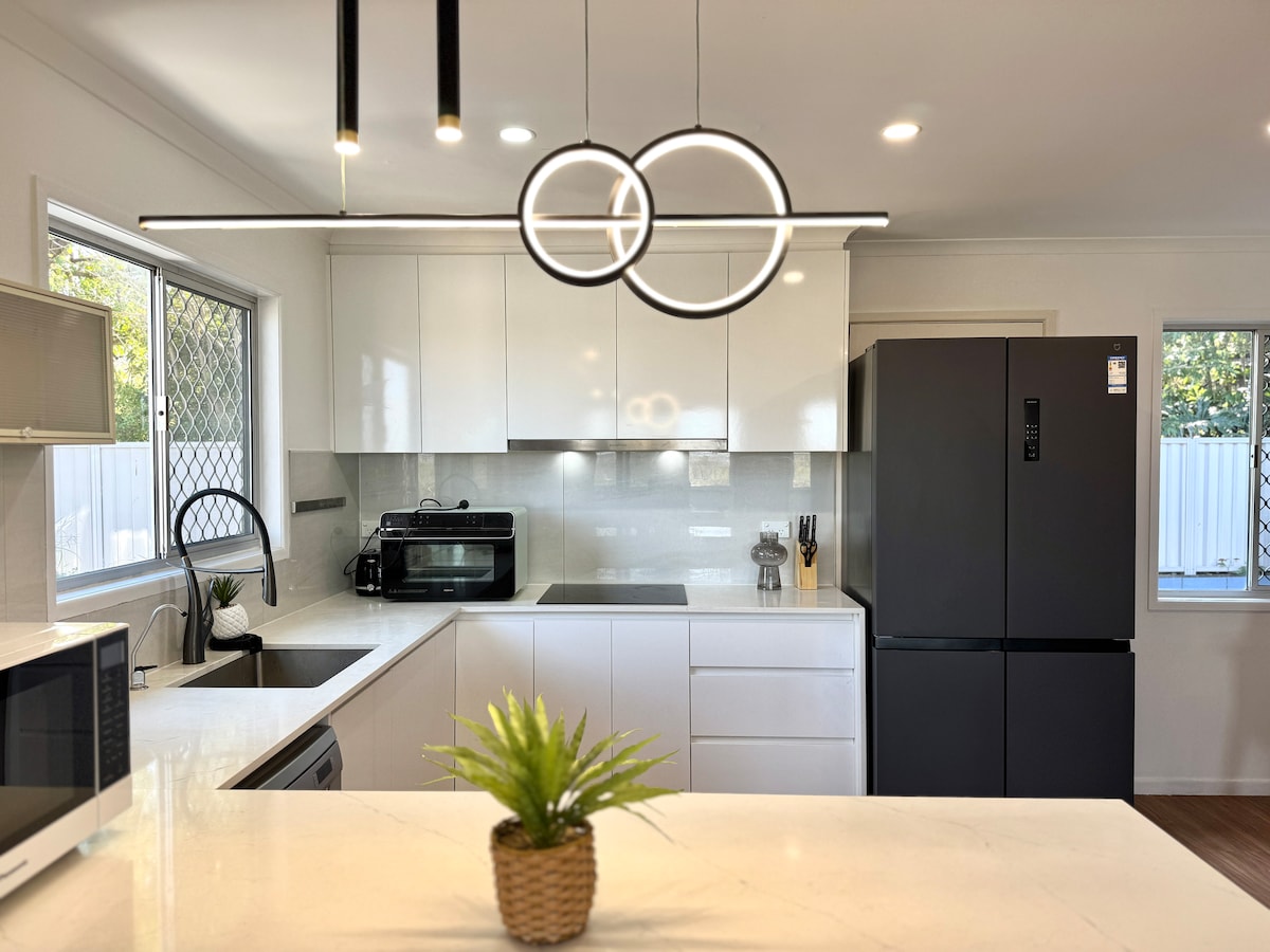 Fully self-contained 2 brm home in bayside Brisbane. Tiddabinda (sister's sitdown) is a contemporary urban Aboriginal styled 2 bedroom totally self-contained home of comfort and modern convenience. With its own front entrance, fully fenced front garden, lounge with excellent entertainment options, a modern full sized kitchen, large bathroom, full sized wardrobes it is home to you. You have your own entrance, full sized lounge, fully functional kitchen (full sized refrigerator, oven, stovetop), a huge bathroom and two bedrooms (both with queen sized beds) with family sized wardrobes. All mod cons are included such as Foxtel, Telstra TV, Google Home and unlimited NBN high speed internet (wifi). This “smart” home is environmentally friendly, uses only non-toxic products and is equipped with two air conditioners and ceiling fans everywhere which ensures your comfort at any time of year. The whole house has filtered water which is delicious to drink. All cleaning products are provided free of charge as this is my home and I prefer to keep it as non-toxic as possible. Smoking area is restricted to the front verandah only. Thank you for respecting this matter. Guests have access to the large covered patio and pool outdoor area – ideal to sip coffee in the morning watching the sun come up while listening to the beautiful sounds of native birds greeting the day or to relax to the waterfall sounds in the evening sipping on some local wine from Sirromet Winery just up the road. You will have full privacy during your stay but I am on hand should you need help or advice with anything. I live in the back half of the home with my own entrance. You may see me coming and going and you will always get a friendly wave. I respect your privacy but if you feel like a chat over a coffee or wine, I am always up for conversation and swapping yarns. I love to find out about other people’s cultures and very willing to share mine. The apartment is located in a quiet neighbourhood with plenty of open green space, walking tracks, and lots of wildlife. Major shopping centres and an entertainment precinct are within easy walking distance, only 7 mins to Sleeman’s Sport Complex and Belmont Shooting Range, 10 mins to Sirromet Winery, 20 mins to airport, 15mins to Cleveland (ferry to Stradbroke Island (Minjerribah) and 35 mins from Brisbane CBD. Walking distance to public transport, local bush walking tracks. Most people use private cars but both taxis and uber are readily available. If you require a rental car, there is a spare car on the property. Located in Capalaba, we are 7 mins from Chandler (home of the Sleeman Sports Complex and the Belmont Shooting Range) with simple public transport to those locations. Walking distance is the Capalaba Entertainment Precinct with two shopping centres, restaurants and cinemas as well as a major bus interchange providing public transport around Brisbane (45 minutes to the CBD of Brisbane). Sirromet Winery (hosting Day on the Green events) is 12 minutes up the road, the ferry to various Moreton Bay Islands is 17 mins down the road, the airport is 20 minutes away, and only 50 minutes to the Carrara Stadium on the Gold Coast. Dreamworld, MovieWorld, Wet n Wild, Outback Spectacular and Seaworld are all well less than an hours drive away. There is one step into the house but all one level once inside. Rooms are family home size. The front yard is fenced and your well- behaved furbabies are welcomed once approved (please advise ahead of time). The home is located in a quiet neighbourhood with plenty of open green space, walking tracks, and lots of wildlife. Major shopping centres and an entertainment precinct are within easy walking distance, only 7 mins to Sleeman’s Sport Complex and Belmont Shooting Range, 10 mins to Sirromet Winery, 20 mins to airport, 15mins to Cleveland (ferry to Stradbroke Island (Minjerribah) and 35 mins from Brisbane CBD.