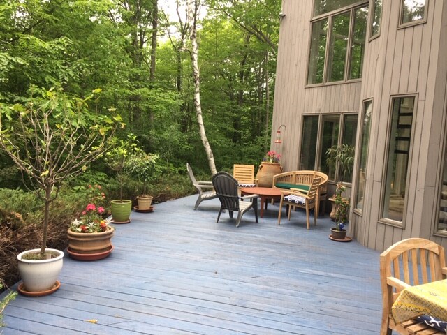 Stay at Netherwood in a classic New England carriage house converted into a guest house with modern amenities, including king beds and en suite bathrooms. Private with amazing views, yet readily accessible to local attractions. Price includes 1 king bedroom suite and exclusive use of the lounge and kitchenette. You can use 2 more suites for another $100 each per stay (for stays up to 2 weeks). Indicate the number of suites you will need (1, 2, or 3); you'll be charged for add'l suites later.