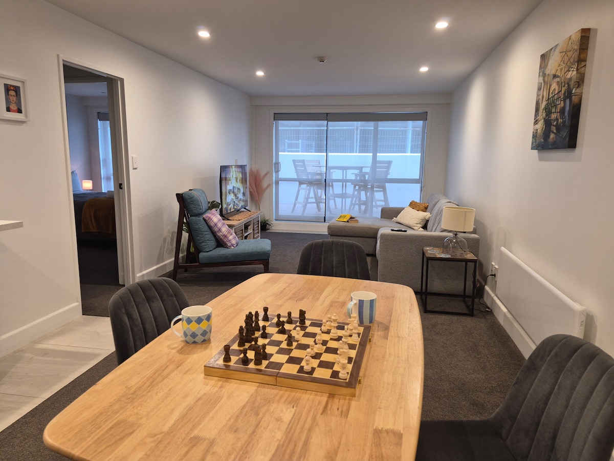 PREMIER LOCATION: Modern 2 bedroom ground floor apartment with spacious courtyard for your exclusive use. Park a few metres from your doorstep! 2 Min walk to Pilot Bay beach, 5 mins to Main surf Beach NZ's Top beach and one of the Top 5 in the South Pacific (Trip Adviser 2017) 5 mins walk to Shops/bars/restaurants/cafes Public Bus transport 2 mins walk from the apartment so you can travel to Tauranga/Papamoa or Bayfair Mall easily if you don't have a car. Approx 4 kms from Tauranga airport.