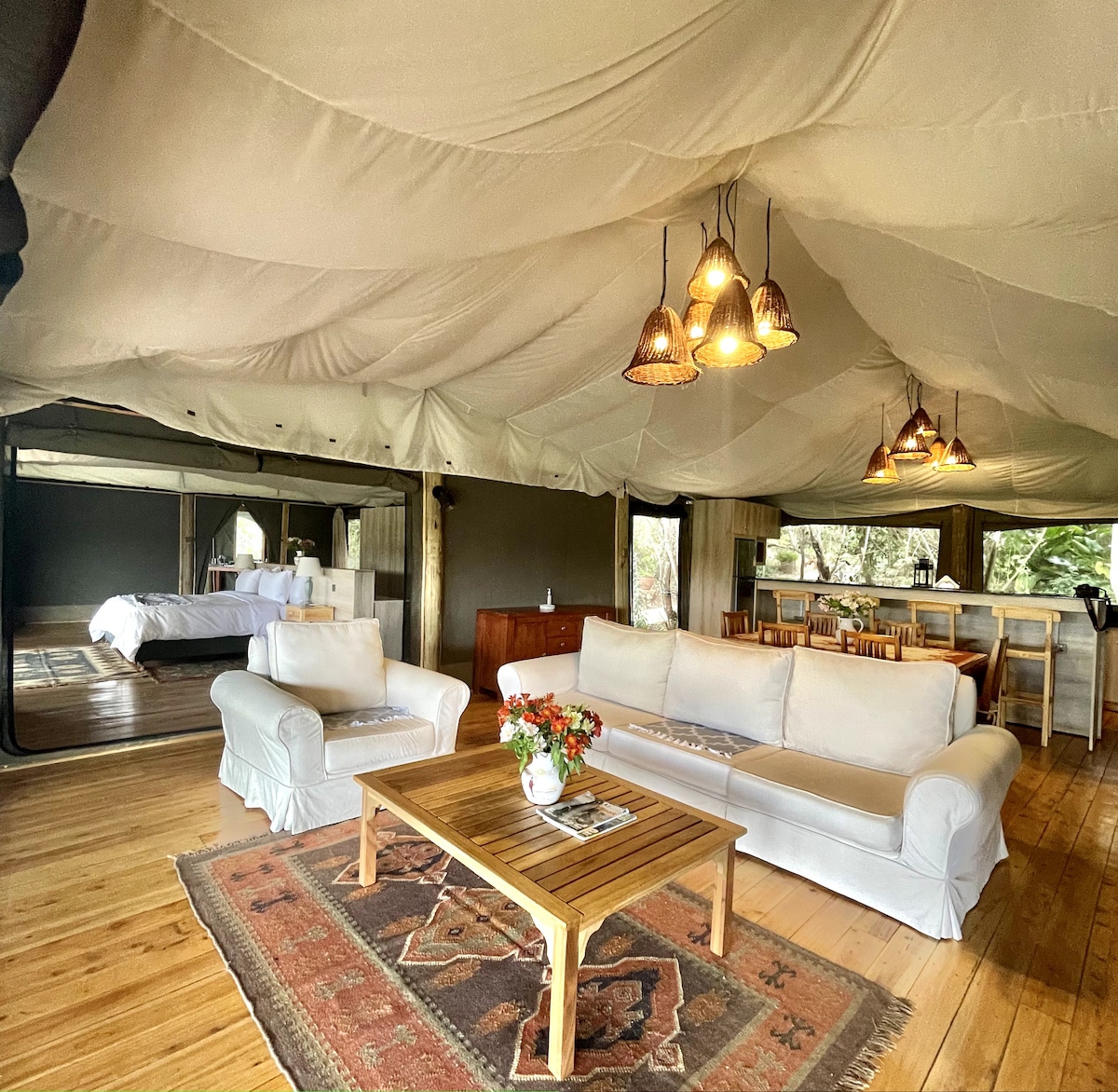 Can't decide between a tent and the comfort of a hotel room? Tucked away in the trees, our treetop houses offer stunning views over the Lolldaiga Hills with an true safari feel. Enjoy the private deck, fully equipped kitchen, and invigorating outdoor shower. On the property there is also a wood-fired sauna with a plunge pool and a treehouse with a hammock net that are shared spaced between all guests at Kilima Gardens. Relax in style while enjoying yourself in the natural beauty around you.