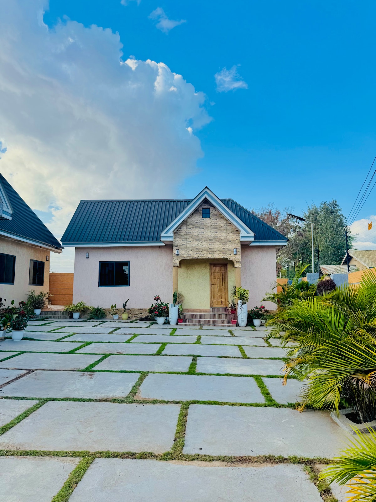 A peace full home in a quiet neighborhood. Secure fenced compound with security guard, free parking in the compound. Covered porch to enjoy the gardens and nice climate. Ground floor: two self contained bedrooms, living room, kitchen with cooking facilities and fridge, store and public bathroom. On first floor two additional rooms and big open space. Easy access to public transport. Nice view on mount Kilimanjaro.