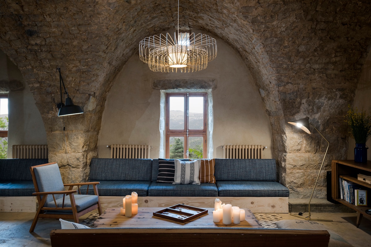 Located at the foothills of Deir el Qamar, Beyt el Jabal guesthouse is a complex of traditional mountain houses dotted along myriad terraces overlooking the green valleys of the Chouf mountains. The houses are connected by pedestrian stone pathways and the rooms are embedded in houses that have been uniquely restored to preserve the traditional charm of the Lebanese mountain house.