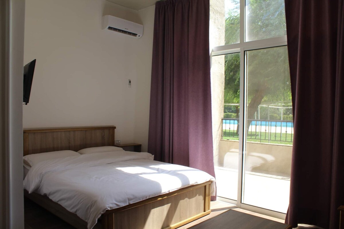The resort is located in the heart of the bekaa in a very calm place to relax. The resort have 2 swimming pool open only in the summer and have rooms availble all the days of the year. The rooms are hand made and very simple. We have rooms that have 1 master bed and others with 2 single beds. The room have an AC, small fridge, smart tv, microwave and water boiler. The bathroom have hot water and their is free wifi.