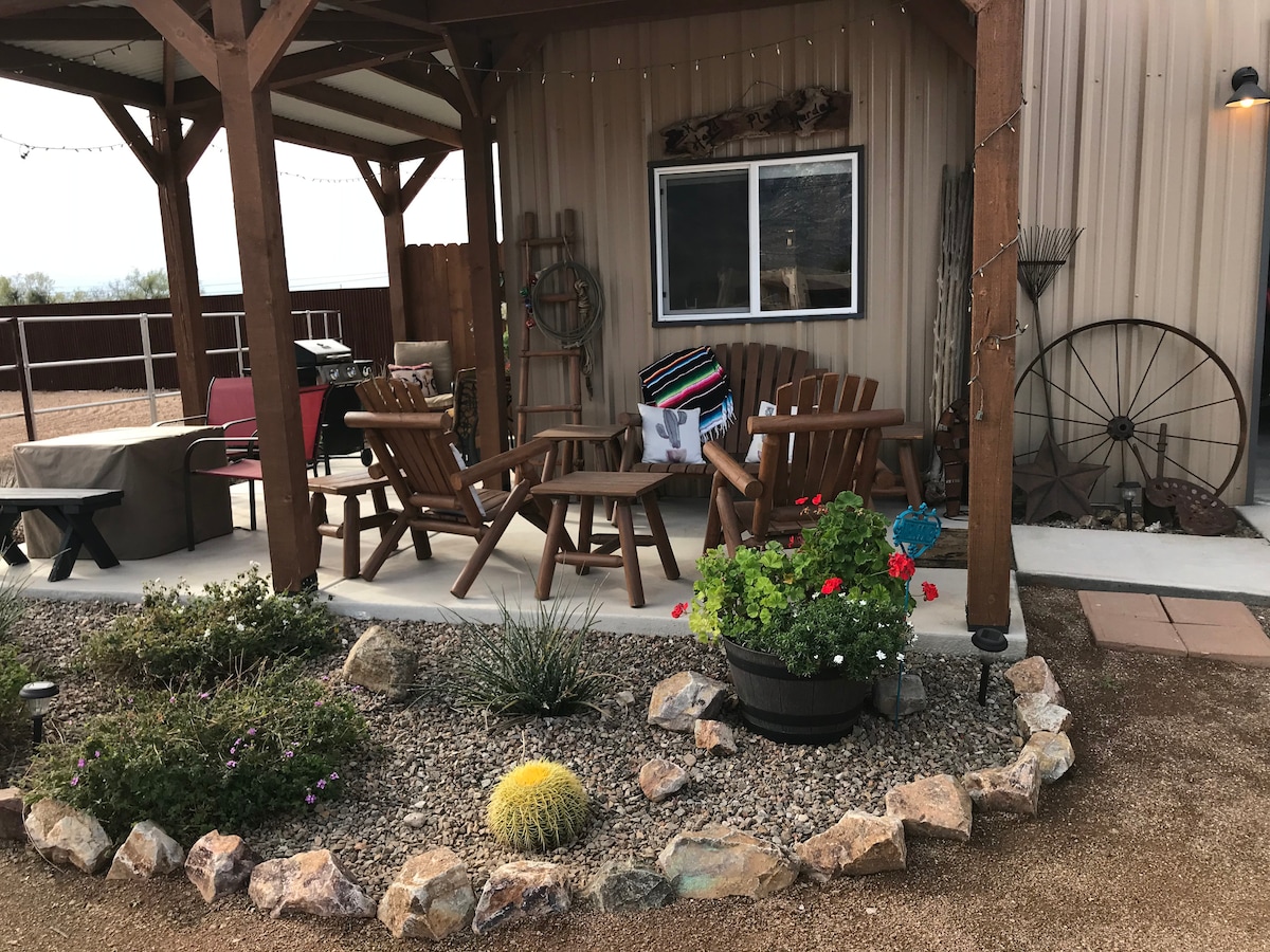 Check out our weekly and monthly discounts! Enjoy the beautiful mountain view from the cozy wrap around porch. Perfect for your morning coffee. Private guest house located on small horse ranch. Close to hiking, biking, and site seeing. Cozy up to the fire pit in the evening to watch the eastern mountains turn pink as the sun sets in the west. Check out our 120 plus 5 star reviews. This is truly a magical place. Non smoking of any kind, no pets, service animals, infants or children.