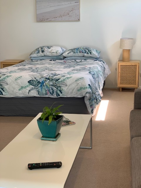 Private, self-contained, equipped with everything you could need for a short or long stay. Contains:1 Living room ,1 Bedroom,1 Bathroom,2 Kitchenettes,Laundry, Porch & Small private outdoor area.Studio is attached to the house with a separate guest entrance, securely locked off from the house. Ideal for 2 people, travelling friends, solo adventurers. Bayfair shopping centre,Beach,Baywave Pools&Gym and all amenities-short walking distance. Bikes &Breakfast.