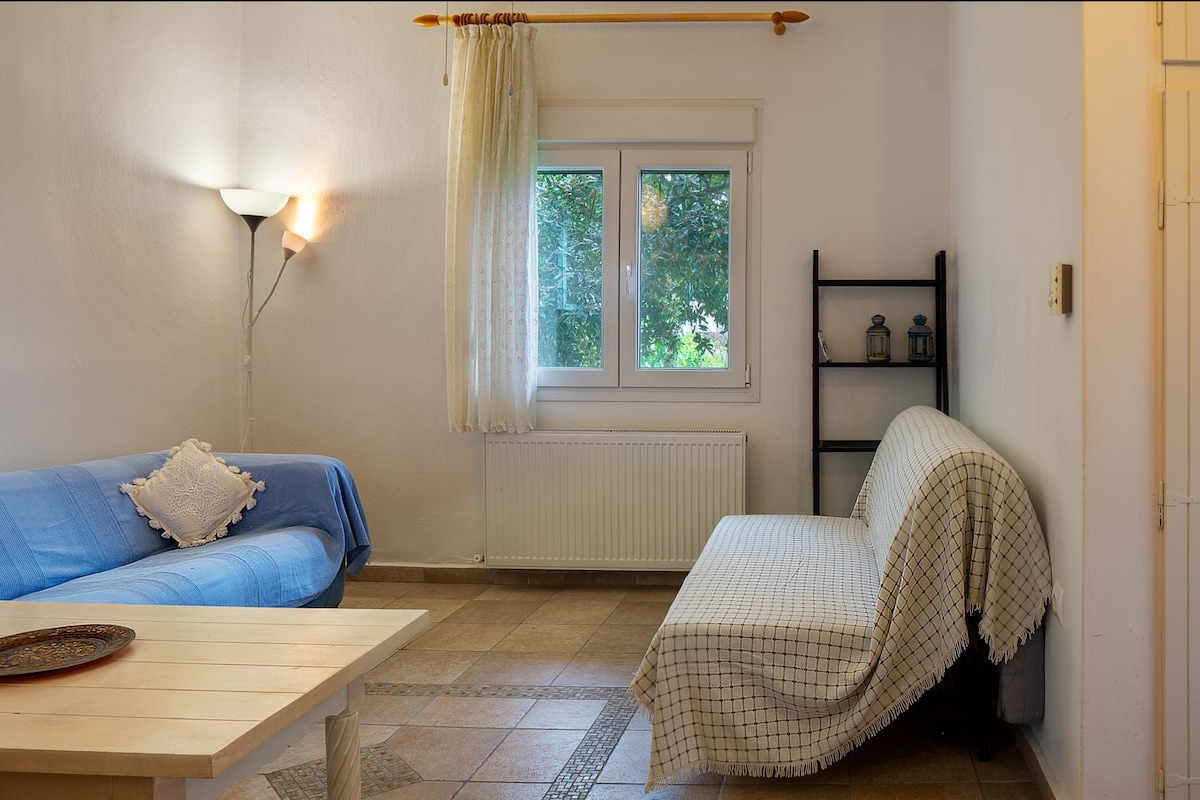 Το studio/διαμερισμα που προσφέρεται είναι 22 τ.μ., με ενιαίο χώρο, διαθέτει ένα διπλό και ένα μονό κρεβάτι , με πλήρη κουζίνα ( 4 εστίες ,φούρνο , ντουλάπια και ψυγείο με καταψύκτη κανονικού μεγέθους) , ντουλάπα ,ξεχωριστό μπάνιο ,με ιδιωτικό μπαλκόνι και αυλή Studio/ apartment22 m² with one double and one twin size bed ,equipped with a full kitchen, (stove with 4 burners and oven, cabinets and a refrigirator with a fridge)wardrobe a seperate bathroom , smart tv,a private balcony and a yard.