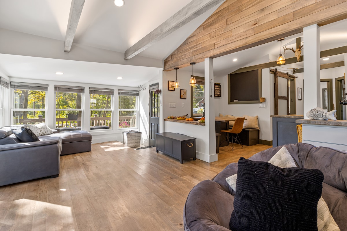 Lakefront, fully renovated and ready for guests to experience lake living at its best from the inside out. The modern gas fireplace and cozy sectional sofa make the living room the perfect place to perch over crisp autumn evenings. Or take a steaming soak in the backyard hot tub after a day of hiking or exploring all of neighboring Warwick’s wineries, breweries and local farms.With direct access to the lake from the property our location is ideal for kayaking. All within a 1 hour drive from NYC!
