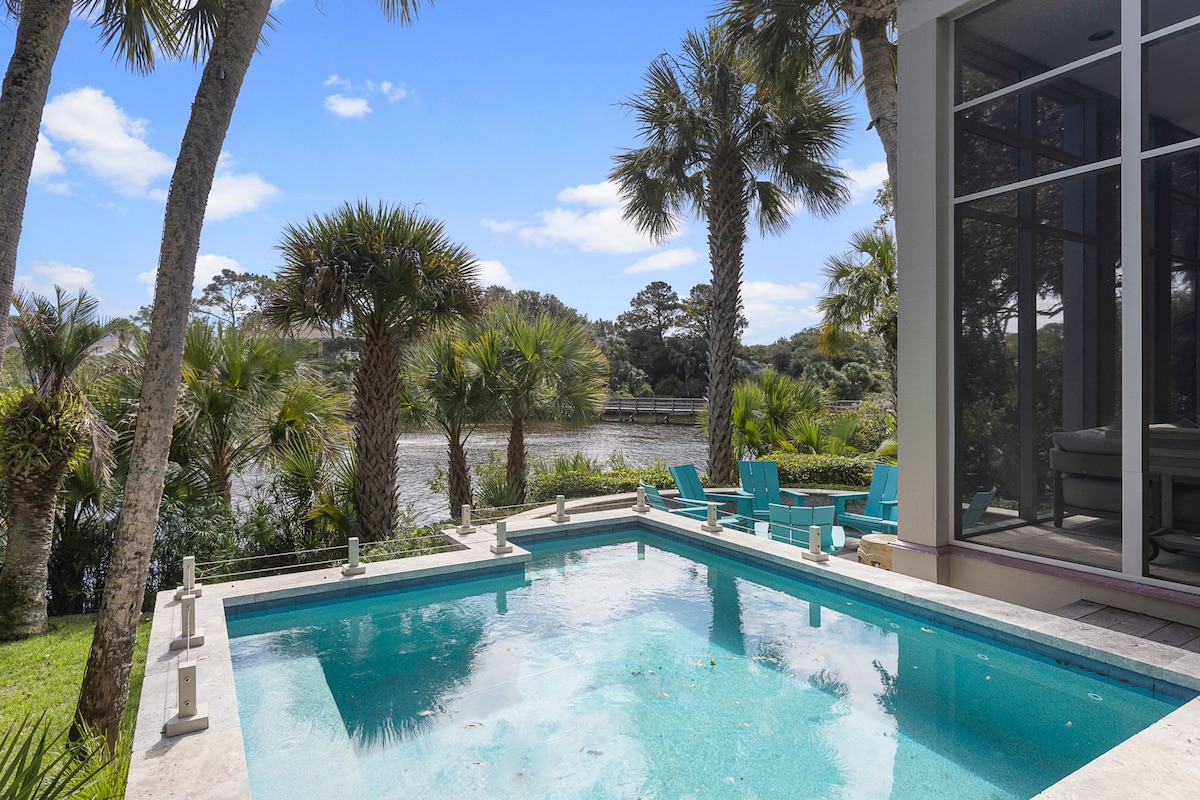 Enchanting house like no other on the island! Designed for guests who value a five-star experience. This luxury getaway is far from ordinary, it is simply perfect. - Right on the world-renowned Wild Dunes golf course - Only .5 mile from the beach -Enjoy FABULOUS SUNSET VIEWS OF THE INTRACOASTAL WATERWAY from the cozy porches - 3 king beds and 6 single bends - Soak away tension in our romantic 2-person tub or in the 8 person tub - Gym, infrared sauna - Game room: pool and Foosball