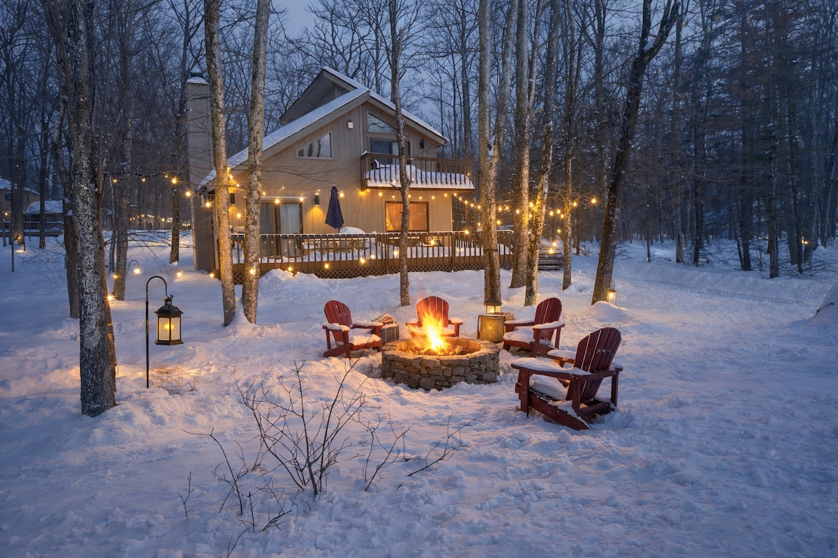 A Romantic Retreat in the Poconos Nestled amidst the rolling hills and lush forests of the Pocono Mountains, this cozy cabin exudes an air of enchantment and intimacy. As you approach, the warm glow of the firepit beckons, inviting you to settle in and bask in the tranquility of your surroundings. The cabin is the perfect retreat for couples seeking a romantic escape, where the stresses of the world melt away, and the only thing that matters is the connection you share with your loved one.