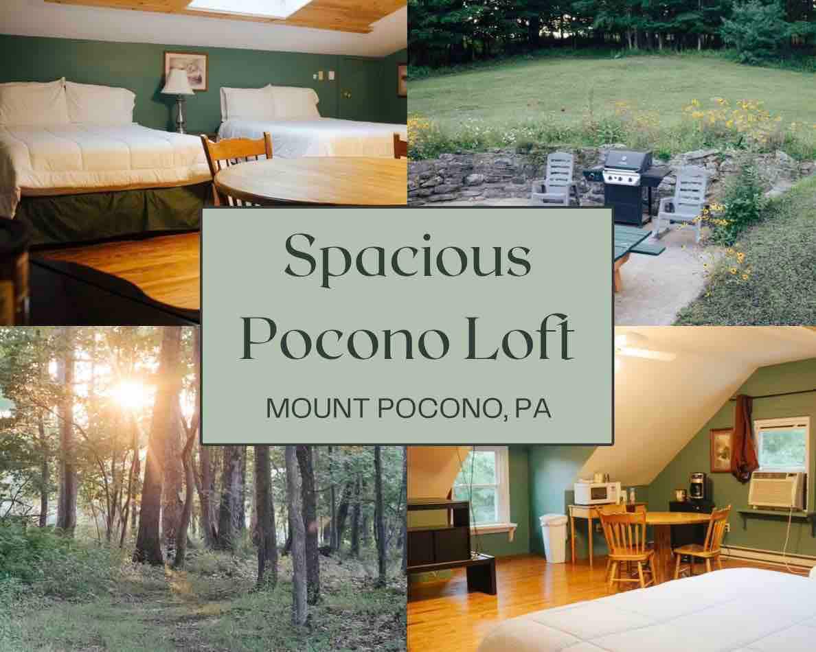 Escape to a cozy fall getaway near Kalahari, Mount Airy Casino, Crossings Outlets, Lake Wallenpaupack, & Tobyhanna State Park 2 miles away w/ fall foliage, & mountain air, lake views, wildlife, & picnic spots. Nestled off a rugged private road. This spa style retreat has a soaking tub, rain shower, smart lights, kitchen w/ smart stove, plush beds, LED mirrors w/ music sync, & retro arcade fun. Perfect for couples, birthday getaways or families seeking a peaceful Poconos stay w/ modern amenities.