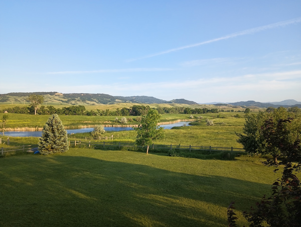 A beautiful, quiet retreat in the Black Hills. The 1100 SFT open concept suite is inviting and easily accommodates 4 people. Located above the garage, this unit includes two bedrooms, (1 with a queen bed and 1 with a full bed with full trundle) and a bathroom. The views of the hills are incredible. UPDATE: There is NO stove. Other ways to cook are provided e.g. air fryer/instant pot, hot plate, microwave, toaster, gas grill) PLEASE NOTE: There is NO TV in the suite. The WiFi is EXCELLENT