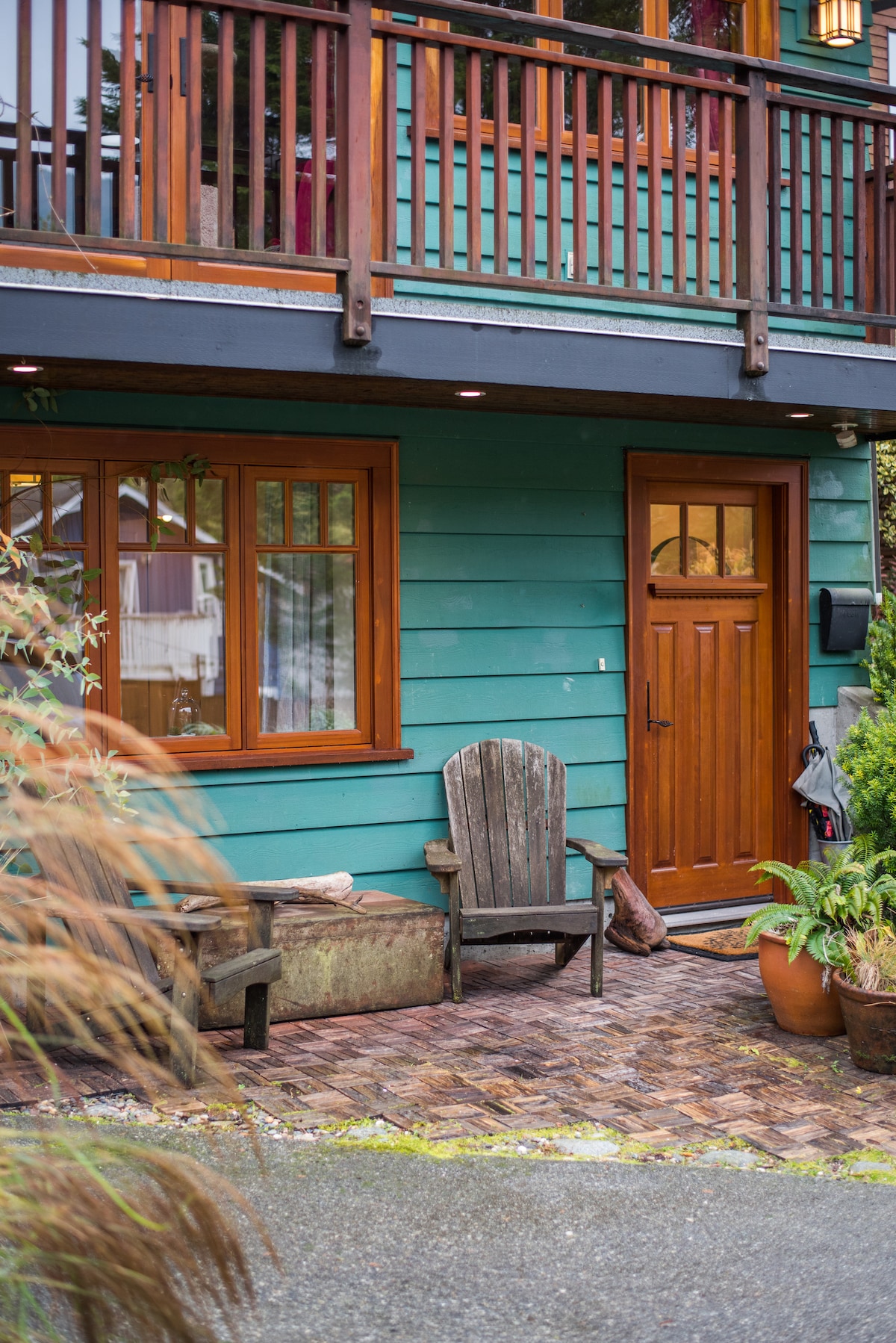 This private, open plan suite was created from my former yoga studio within our family home, reusing and repurposing materials wherever possible. Warm reclaimed hardwood floors leads to a deck at the edge of the Princess Park forest, with a salmon creek running to the west. Wildlife often passes through — raccoons, owls, and occasionally even a bear. Some of the North Shore’s best mountain biking is just a block away. A quiet, unique retreat designed for rest, privacy, and nature.