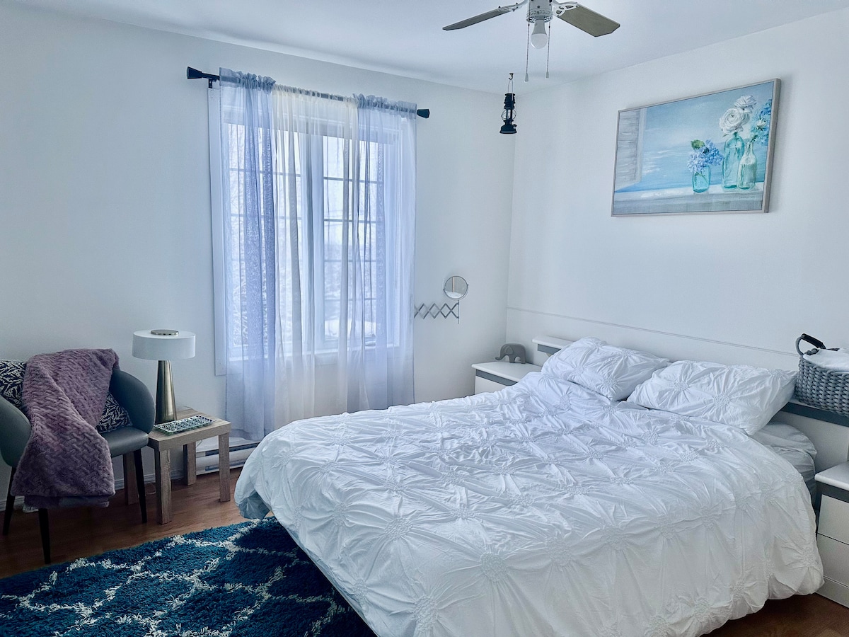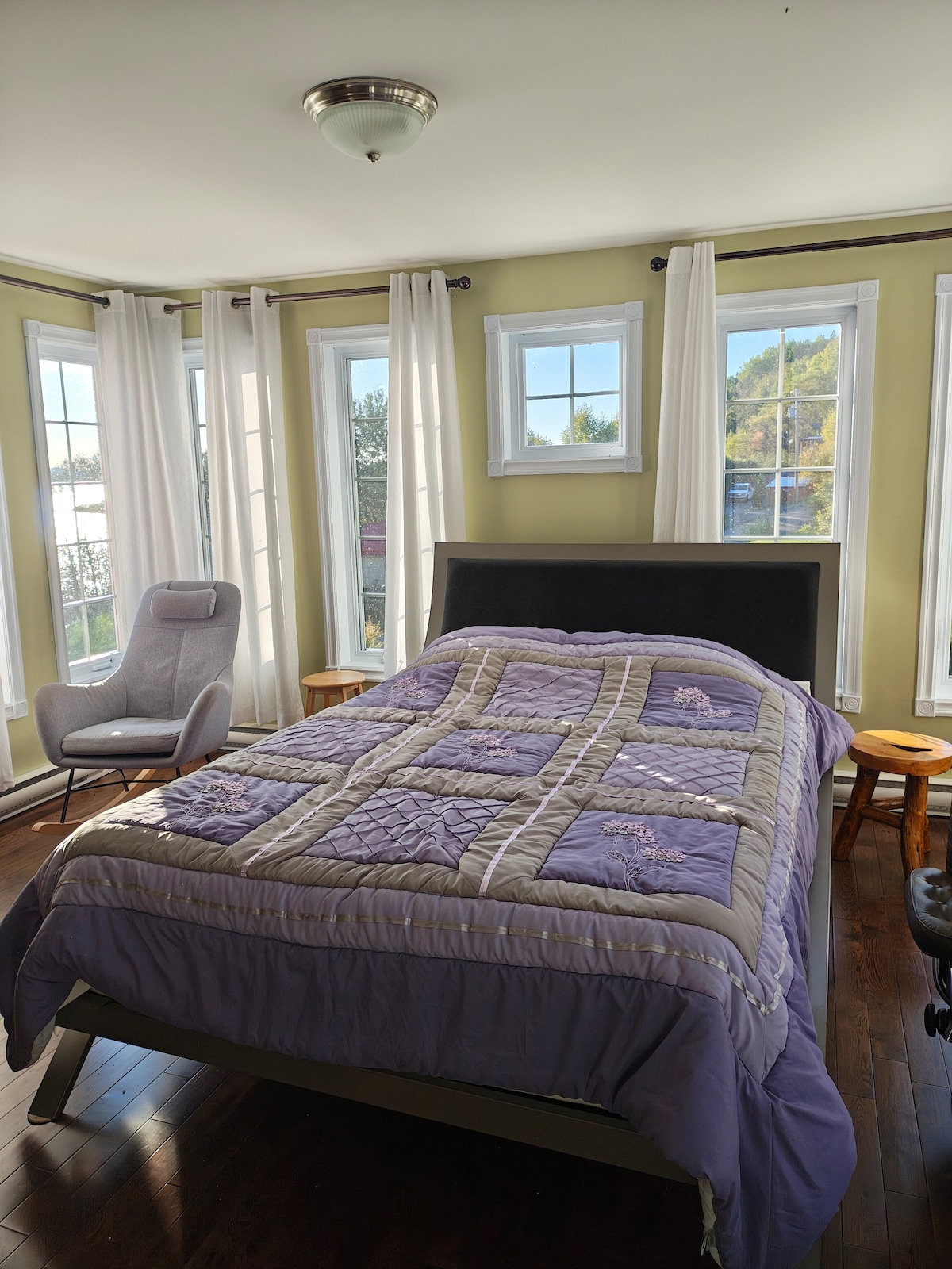 Chambre privé avec un grand lit, bain, douche, toilette, cuisinette, salon très lumineux avec vue panoramique sur le Saguenay, terrasses, décoration inspirée du bord de mer. Situé aux pieds des monts Valin, au bord de la rivère fjord Saguenay, à 15 minutes de la ville et vaste Parcs naturel. Vous trouverez petite épicerie/boucherie, boulangerie artisanale, maraîchers, micro brasserie, café et atelier d'art. La route 172 de la biodiversité, à Saint-Fulgence entre le Lac-St-Jean et Tadoussac.