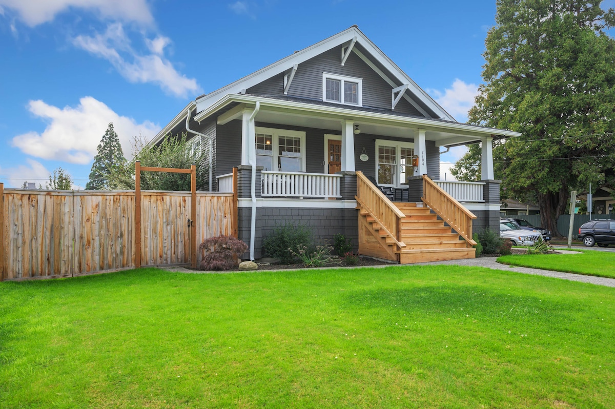 Enjoy this beautiful, newly renovated 1900’s character house on the hill in Mount Vernon. Steps from downtown with shops, restaurants, and riverwalk, yet nestled in a quiet neighbourhood on the hill, blocks from the hospital. The house offers a full kitchen including refrigerator, dishwasher, oven, range, microwave, toaster, and kettle. Views of the Skagit River and Olympic Mountains can be seen from both floors as well as stunning sunsets. Bedrooms upstairs include 1 king bed and 1 queen bed.