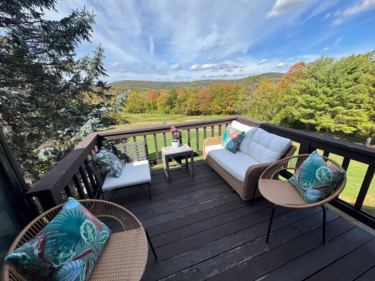 Skiiis N’ Tees is a 3-bedroom, 2-bath, four-season getaway where mountain views and fresh air do wonders for the soul. Just a short drive from NYC, it’s perfect for couples, families, girls weekends, or guys’ golf trips. This stylish end-unit condo sits beside a 9-hole golf course and is just 5 minutes from the slopes. Hike, sip at vineyards, or go apple picking—there’s something for everyone. One dog stays free. Pack & Play available. Come for the views and stay for the vibes!