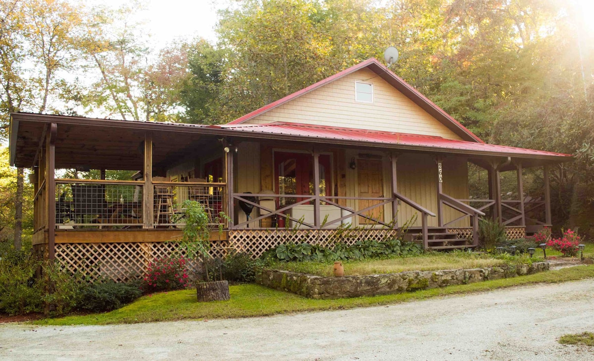 Secluded, yet just 3 minutes from town. Paved road leads to the cabin. Enjoy the peaceful sound of the creek fed by 2 waterfalls. 4 guests only-NO exceptions! Infants/children ARE guests. No pets of any type. NO smoking/vaping inside. LL: Bedrooms, bath, laundry & porch. UL: Kitchen, living area, bath & screened porch. We know that you'll fall in love with the area. Clayton has been voted best "Farm to Table" community in GA and has many wineries and waterfalls!