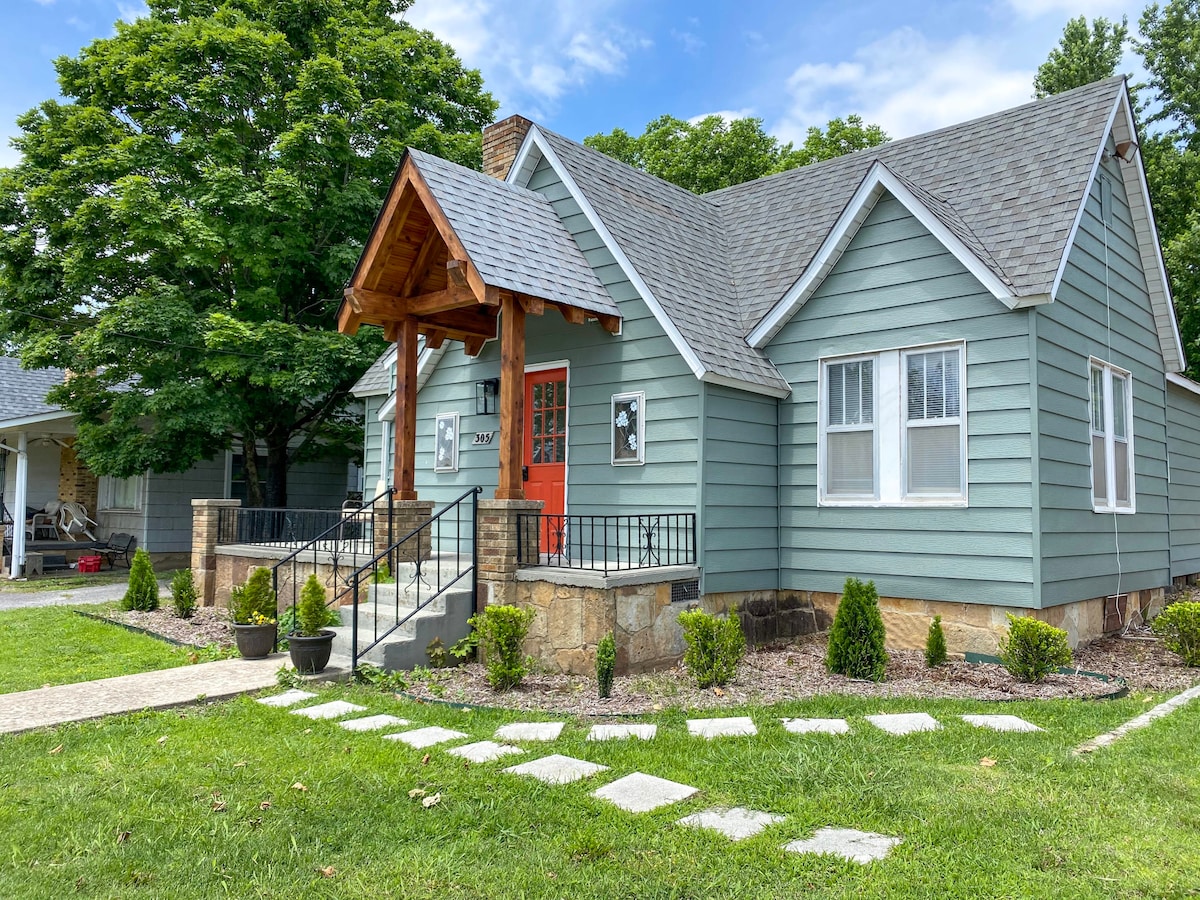 Our new, no step property, on nearly 1/4 acre in the Bluegrass Capital of the world, Mountain View, AR, is a 2 bedroom, 1 bath home, including a 1 car garage! The bathroom has a deep soaker tub & no step shower entrance, safe & helpful grab bars, shower wand & teak shower bench makes for a luxurious experience. Well stocked retro style kitchen will be a joy to cook in. Your ‘Mountain View Moment’ will make a lasting memory, so if you want a luxury stay, make sure you rent this getaway!