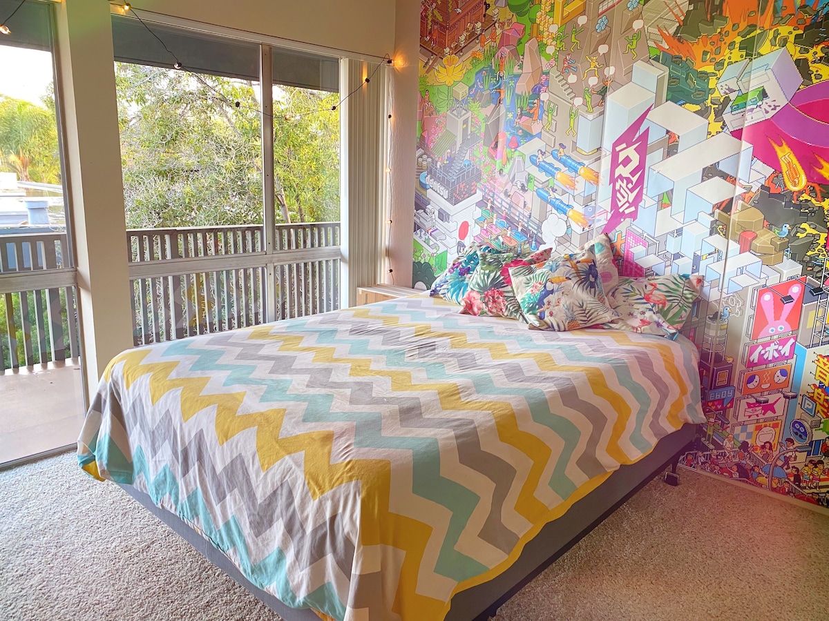 Welcome to Savvy Studio~a clean and quiet apartment where you can relax or work in peace. Located in a self contained wing of a snappy Eichler Mid-Century home, enter through a private unique atrium breezeway to the locking entrance of your studio apartment that features a comfy full-sized bed, table for working or dining, mini-kitchen, and private full bathroom.