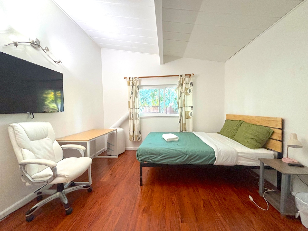 Nestled in the heart of Silicon Valley, this chic studio blends serene cozy design with modern vibes. Walk to giant tech campuses, downtown Castro Street, shops, and Caltrain. Enjoy a sleek full kitchen, bright interiors, and seamless comfort near innovation and transit. Ideal for business travelers or anyone seeking a calm, connected retreat. Walkable prime neighborhoods, washer/dryer and all amenities in unit! Brand new all around!