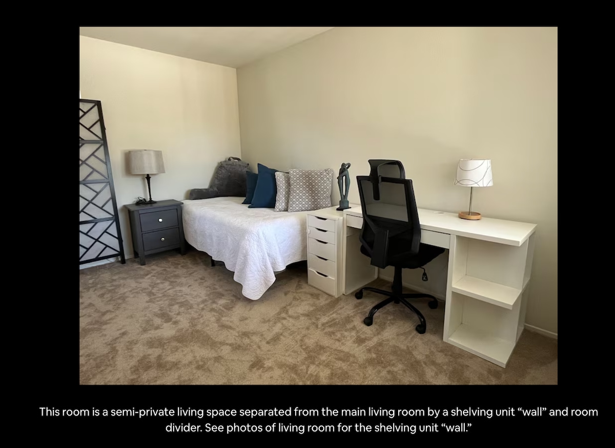 Simple, peaceful, and located close to freeways, restaurants, and shopping. You are booking the primary house labeled #1. This house has a detached guest unit that may be occupied. Please let us know if you have any issues with this arrangement. The only shared area's are the garage, driveway, and entrance to the property.