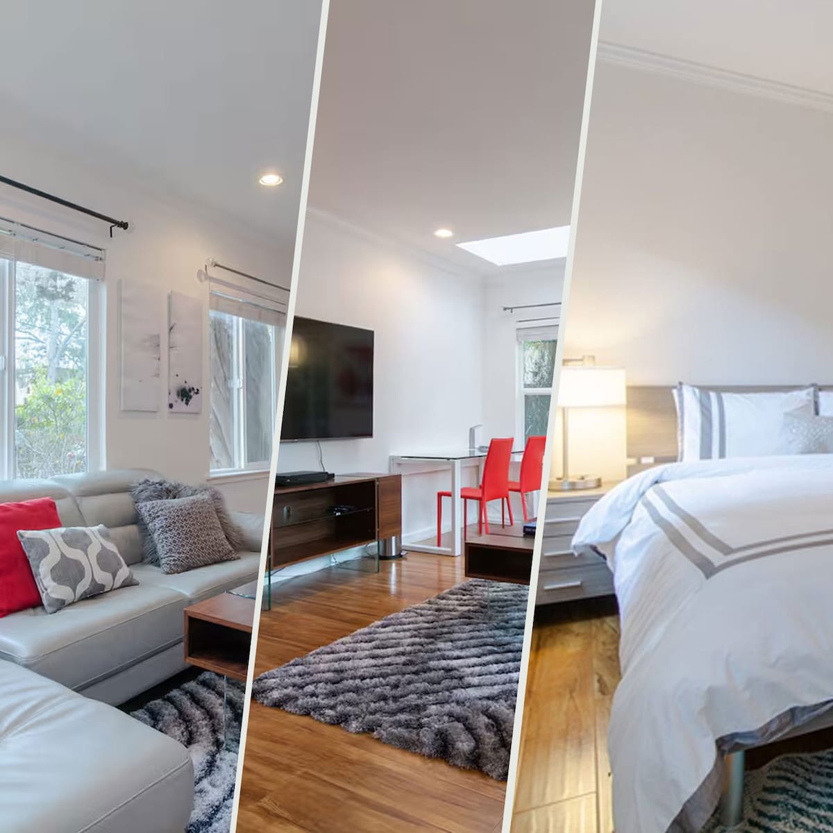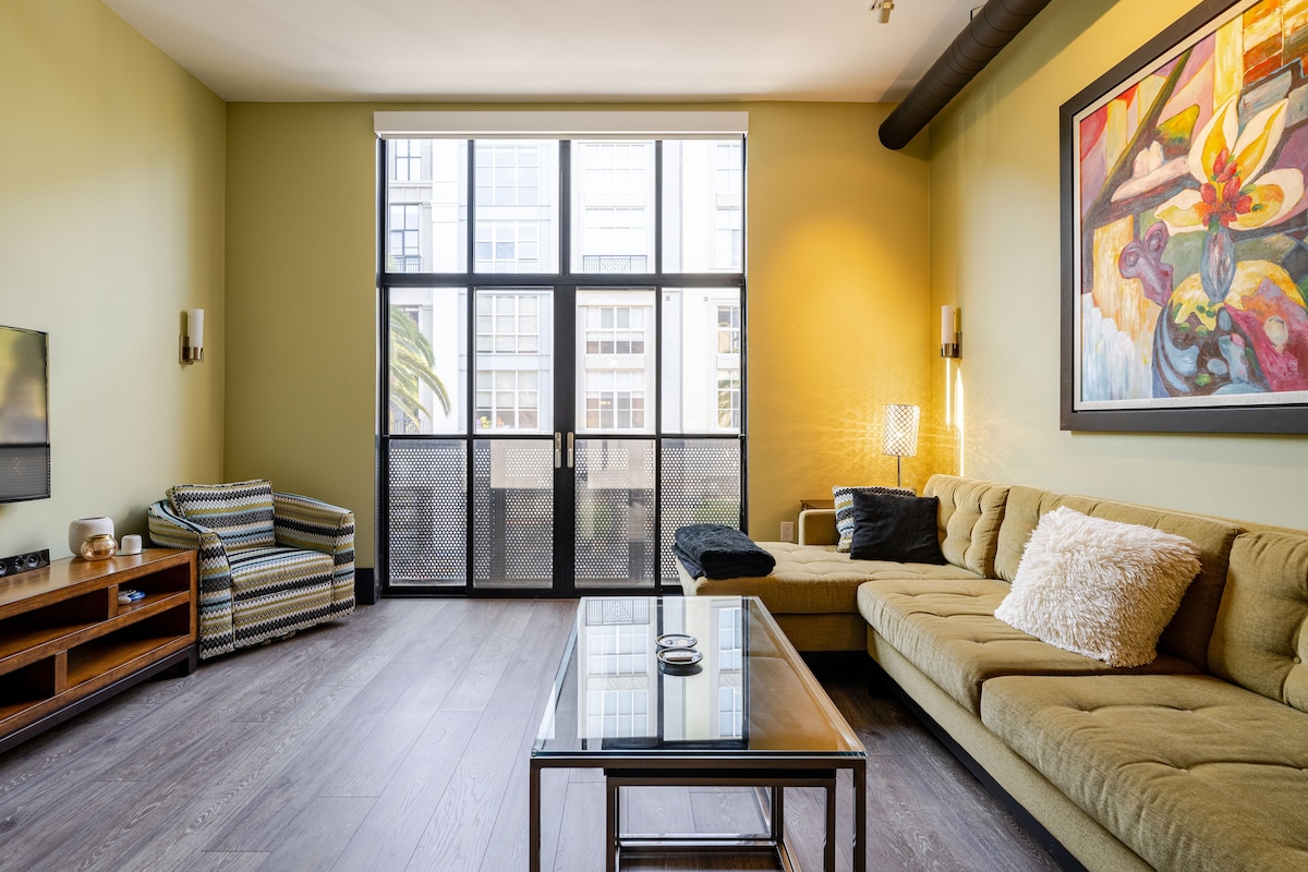 Fully renovated in 2022, everything is new. This stylish 2nd-floor condo overlooks vibrant Santana Row - the jewel of the Silicon Valley/South Bay Area with great restaurants, shopping, movie, spa, salon, and many entertaining options just downstairs. There are 1 queen, 1 twin and 2 large sofas. The entire space has been renovated - kitchen, bathroom, floor, paint, lights, and all new appliances. High speed WiFi and ex-large screen smart TV.