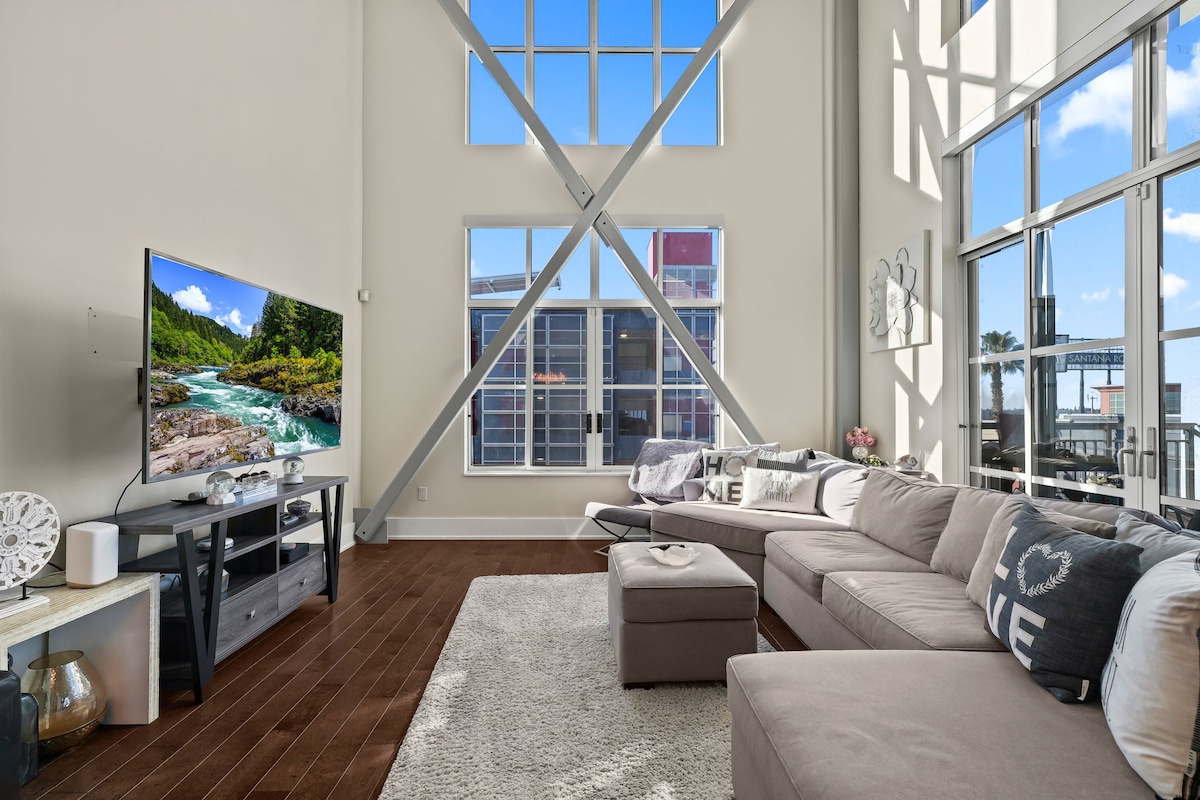 Beautiful, luxury and clean 2 story open plan loft on the top floor at Margo building right on Santana Row. 2 bedroom 1,5 bath. Panoramic view of the mountains, downtown San Jose and the planes landing at SJC. Your favorite restaurants and shops downstairs. Valley Fair Mall is across the street. Brand new king size bed in the Master Bedroom, walk-in closet, kitchen, Nespresso coffee, teas. Underground parking with EV/Tesla hookup. Security on site 24/7. Ideal for business travelers and families.