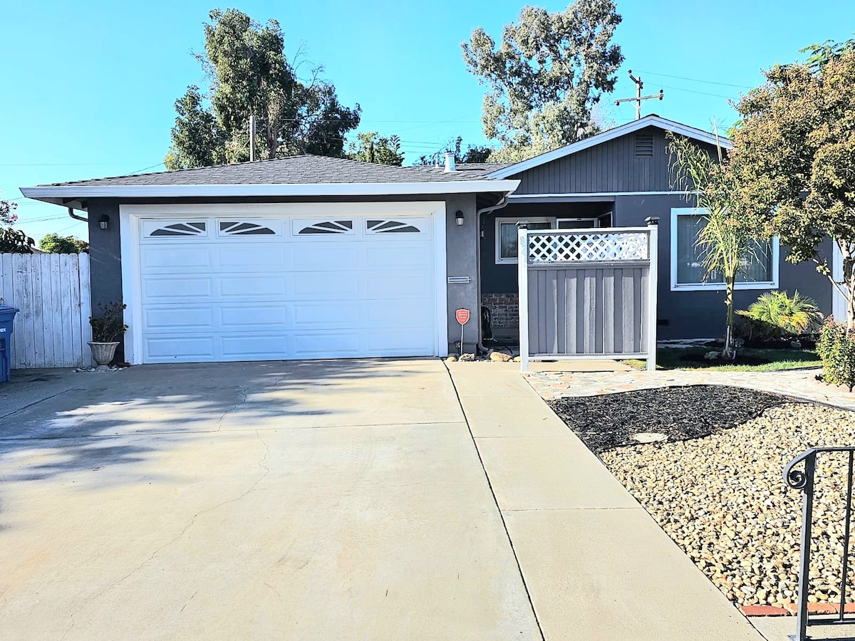 Unwind in style in Silicon Valley's heart. Our backyard offers a peaceful retreat, complete with fruit-bearing trees and ambient lighting. Modern comforts await indoors, from brand-new furnishings, high speed internet, an executive office and a large dining. Your culinary adventures are supported by a well-stocked kitchen and our complimentary treats. With ADT protection and generous parking, convenience is a given. All set in a serene neighborhood, minutes away from tech hubs and entertainment.