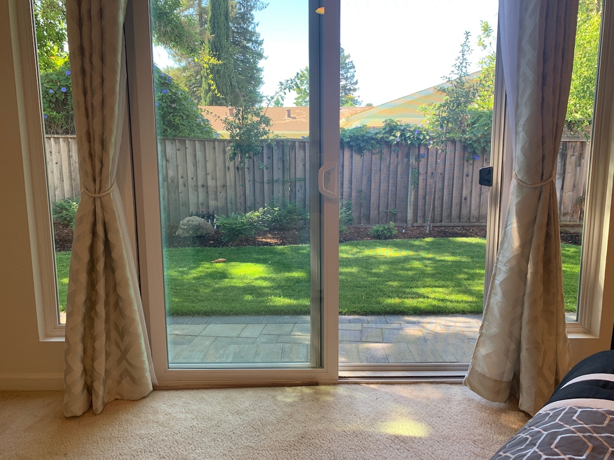 Upscale, private suite w/separate entrance in quiet, safe neighborhood at the center of Silicon Valley! Minutes away from Apple/high tech companies, a cosmopolitan downtown, trendy restaurants, bars, and a historic park for leisurely stroll. Few blocks to US-101, Central Expy, and public transit. Enjoy the warm decor, comfortable queen Beautyrest mattress, luxurious sheets, stalked up coffee bar, private patio overlooking a peaceful back yard as well as unlimited free street parking.