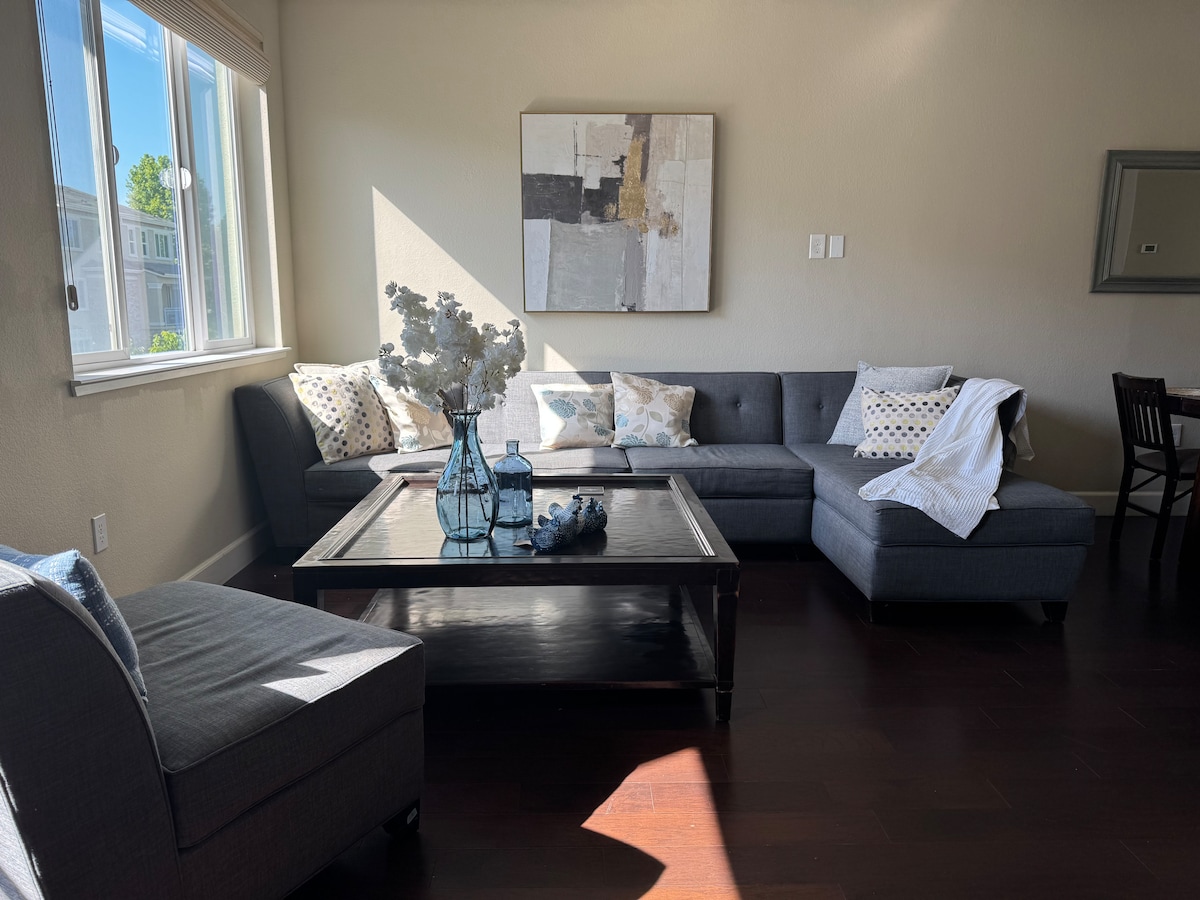 This beautiful 2-beds, 2-bath townhome featuring HEPA air filtration is located within walking distance of the San Antonio Center in Mountain View, where you'll find restaurants, Safeway, Walmart, and a movie theater. It offers a comfortable stay while you visit the heart of Silicon Valley. A lovely children's park is right next door, and the townhome is just minutes away from nearby cities like Palo Alto, Los Altos, Menlo Park, and Sunnyvale. Stanford University is also less than 10 mins away.
