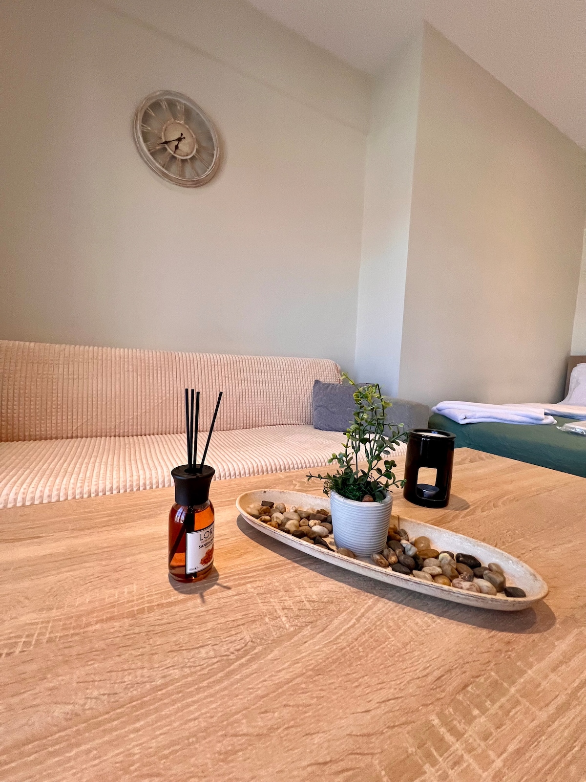 In the heart of Ptolemaida, right at Vasilisis Sofias street, youll find our beautifull loft. Fully custom/handmade interior design inspired by both Scandinavian and Japanese aesthetics. Think of wood textured floors, silk textured fabrics, earthy smooth colours, smart ambiance lights, and a direct view to mount Askion (Siniatchko). Enjoy a private cinema experience with a smart projector casting on a 170" wall and a right from your bed.