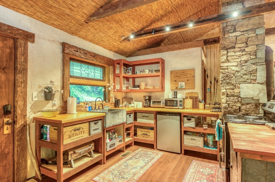 A private & eclectic Appalachian Mountain experience awaits you at 4Creeks. Well off the main road and nested in the trees, “On the Rocks” geodome is a luxury “glamping” experience! This geodesic dome has it all— full kitchen, full bath, supplemental heat & air conditioning, babbling creek and forest views. Want to go out? We're only 10 minutes from downtown. Like staying in? Our full kitchen and grill bring you comforts of home. Larger party than 4? Book our Skoolie “High Rollin” for 2 more!