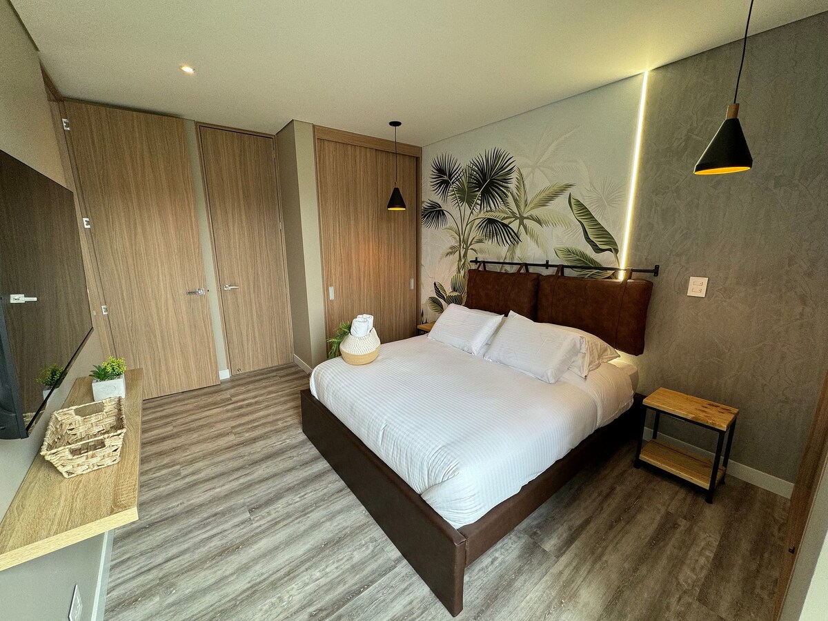 Welcome to a stylish and centrally-located place! Gorgeous 15th floor apartment with an UNBEATABLE VIEW. Our building offers top-of-the-line amenities, including an indoor pool, sauna, spa room, gym, terrace, bar, and rooftop restaurant. You'll feel like you're staying in a hotel with the convenience of an Airbnb. Close to Parque 93, you'll have the opportunity to experience local and international cuisine from some of the best restaurants in the city.