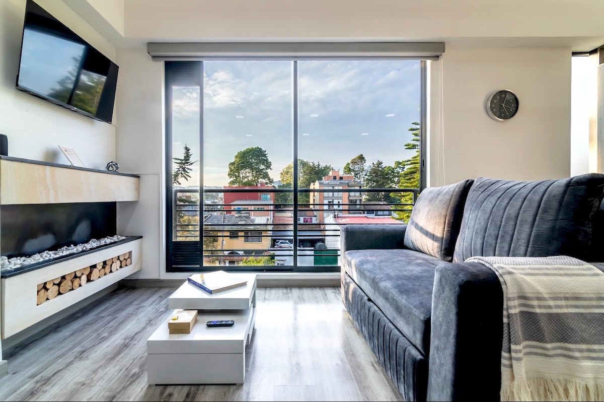 🤩 Te invitamos a reservar en la mejor zona de Bogotá! diagonal al parque el Virrey. Ideal para viajes de negocios y turismo. En nuestro apto encontrarás todo para una estadía ideal: ✅ 2 Smartv ✅ Café gratis ✅ Chimenea eléctrica ✅ Agua caliente ✅ Blackout y persiana motorizada ✅ Bocina inteligente ✅ Cocina dotada ✅ Sofa cama con nido ✅ mini bar (costo adicional) Estarás a poca distancia del parque de la 93, centro comercial Andino, Restaurantes y los mejores bares de la ciudad!