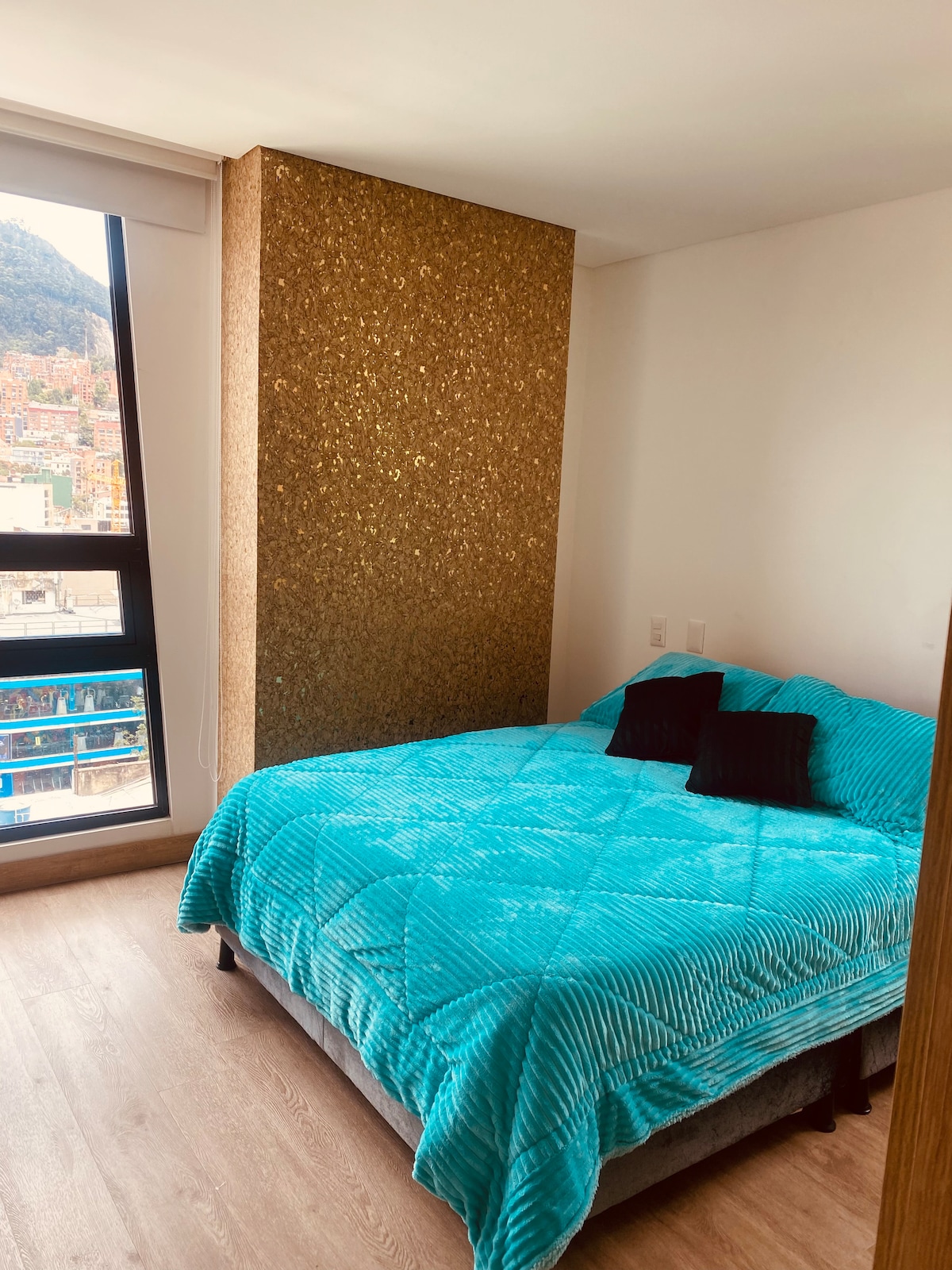 A stylish brand new place to stay perfectly comfortable for a short or long period of time. It has clearly everything you might need for having a unique and unforgettable experience overlooking the beautiful mountains and view of Bogota during the day and night. A great queen size bed, a sofa-bed, excellent bathroom, and for those that likes cooking, it has all sort of gadgets for facilitating so.Nearby you will find the best clubs such Theatron, among many others, grt-bars and shopping spots.