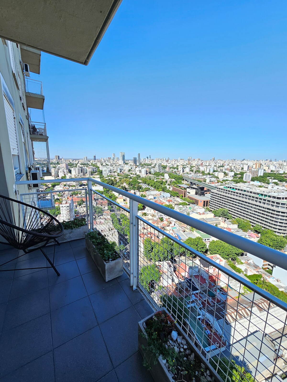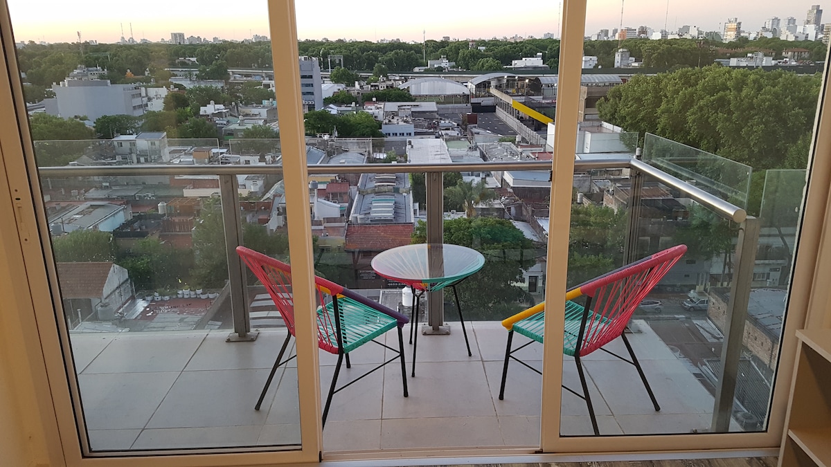 Hermoso apartamento con dos habitaciones super espacioso y luminoso. Piso 26 con vistas abiertas de la ciudad en todos los espacios. Muy cerca del MOVISTAR ARENA. Torre con seguridad 24 hs y amenities. Ubicado sobre la Avenida Dorrego este espacio está excelentemente ubicado, con fácil acceso, cerca de Palermo, de los outlets de Villa Crespo y toda la movida gastronómica de Chacarita. Este alojamiento es único por lo espacioso, por las vistas y por el enorme jardin con pileta para que disfrutes.