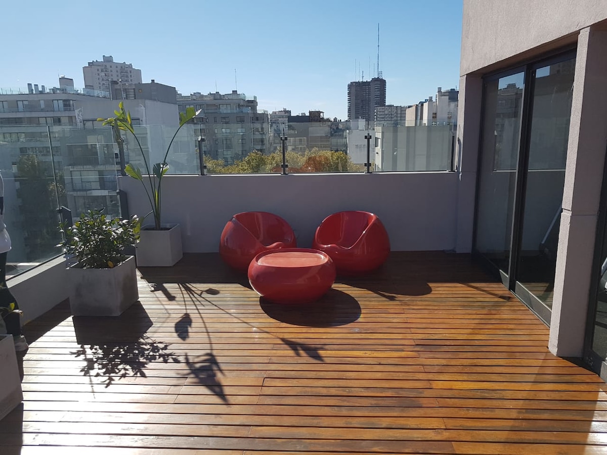 Espectacular departamento, amplio y luminoso con terraza, piscina y parrilla privados. Totalmente equipado y decorado para que la estadia sea lo más placentera posible. El alojamiento se encuentra en el último piso de un edificio moderno ubicado en Palermo Soho, una de las zonas más seguras y con gran atractivo gastronómico y cultural. Ideal para parejas que buscan tranquilidad, un descanso confortable y disfrutar de una increíble terraza con una vista preciosa.