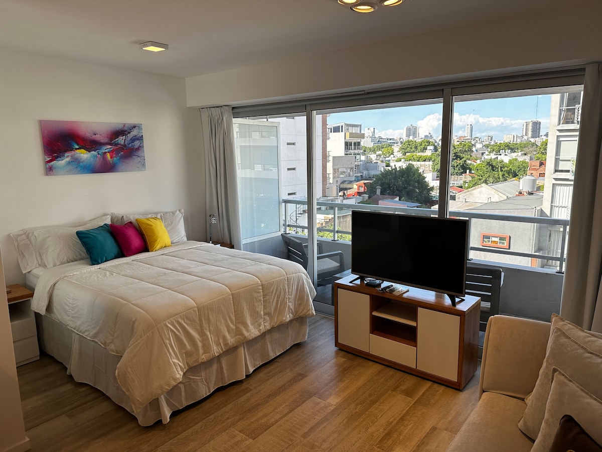 Estudio luminoso en Palermo, uno de los mejores barrios de Buenos Aires, con toda la movida de bares y restoranes. Tiene una terraza con jacuzzi, zoom y gimnasio. Ideal para disfrutar de la ciudad desde un lugar nuevo y acogedor, excelentemente ubicado. Tiene una cama doble, un sofá cama, smart TV, cocina, laundry y balcon.
