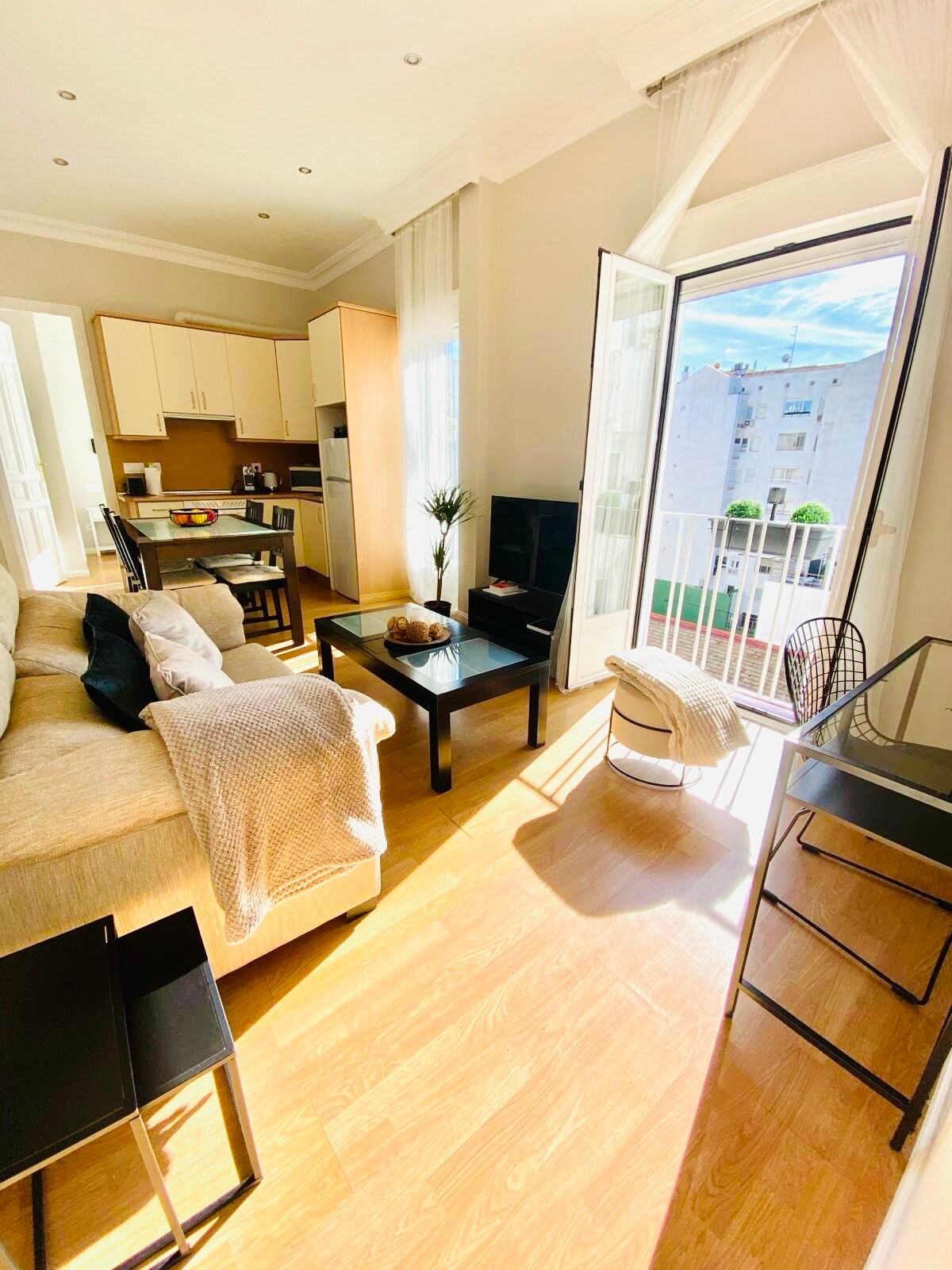 黄金地段的舒适公寓,阳光充足,带停车位