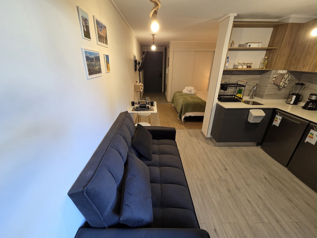 🏡 Comfortable Apartment with Terrace and Excellent Location in Santiago Centro Welcome to your space in Santiago! This cozy apartment is designed for travelers seeking comfort, a great location, and a practical, peaceful experience in the city. Whether you're visiting for work, tourism, or to attend a concert at Movistar Arena, you'll be well-connected and have everything you need.
