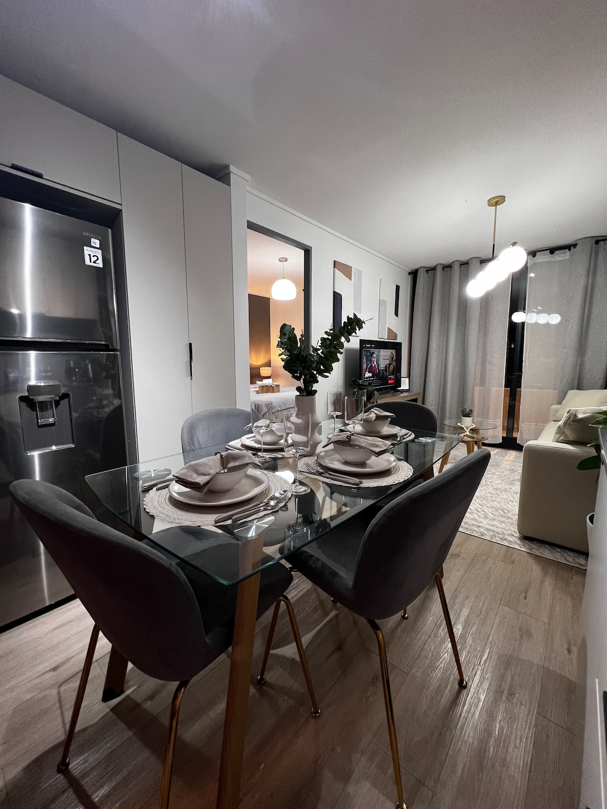 Un departamento nuevo, moderno, muy luminoso y completamente equipado, ubicado en un edificio de alto estándar. El departamento destaca por su diseño acogedor, su excelente iluminación natural y una decoración cálida estilo contemporáneo. Ubicado en una zona estratégica de Santiago Centro, tendrás todo a minutos caminando: Parque O’Higgins, Fantasilandia, Movistar Arena, supermercados, cafés, locomoción, universidades y acceso rápido a la Autopista Central.